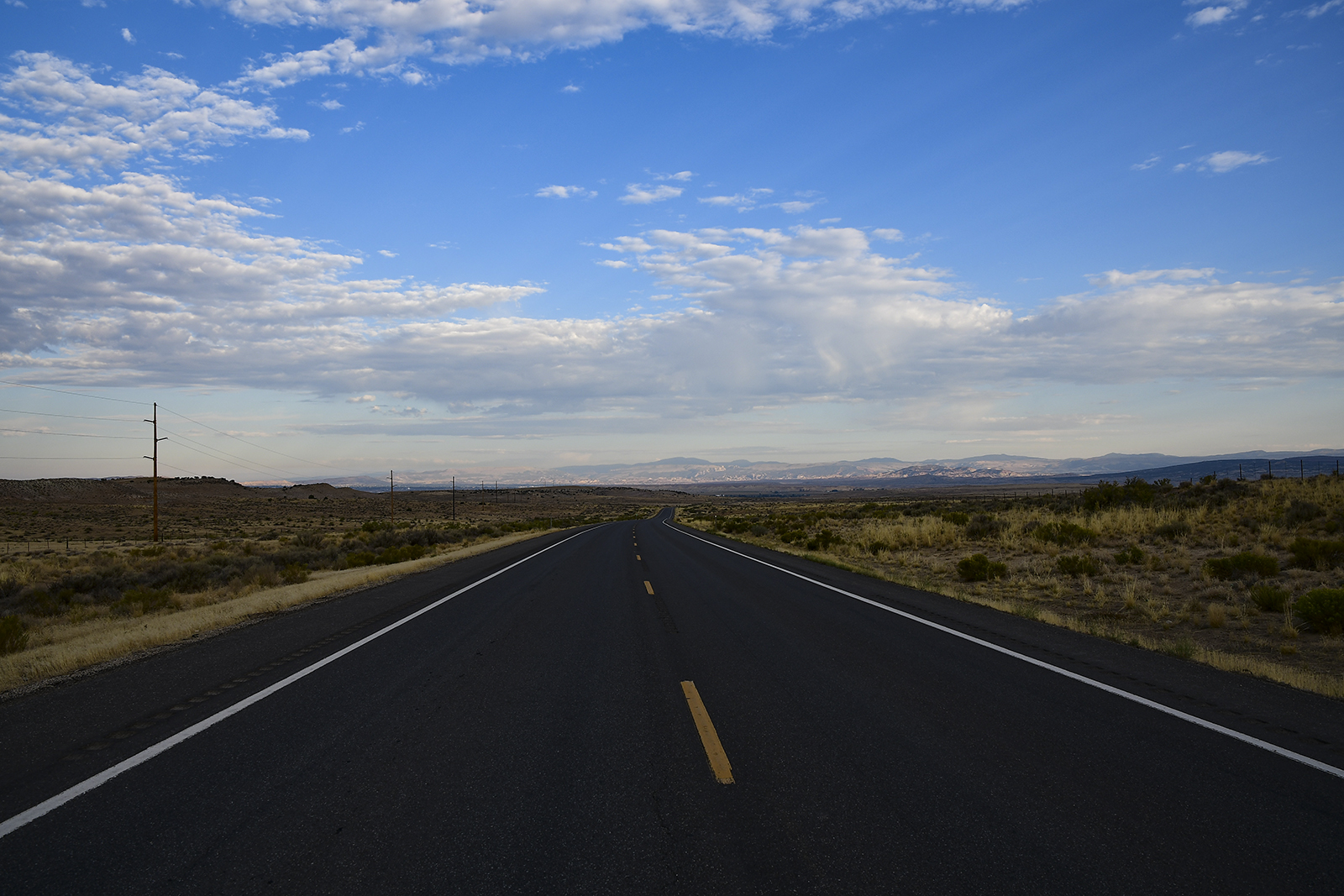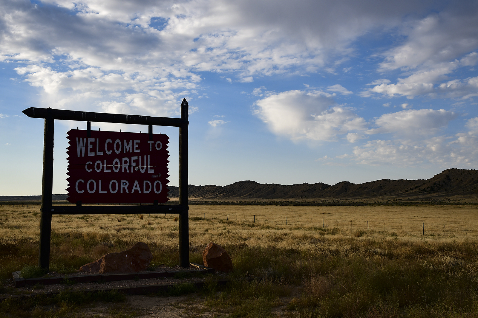 Immer wieder verschwindet die Straße ganz hinten am Horizont. Hat man diesen Punkt erreicht, verschwindet sie wieder am Horizont. Und das stundenlang. Nach 2 Stunden Fahrt biegen wir nach Osten in Richtung Colorado ab.