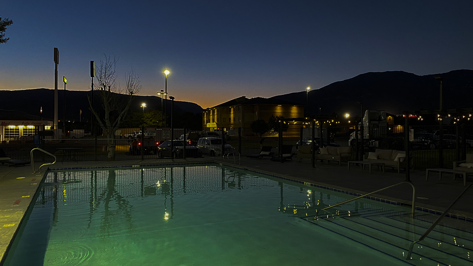 Am frühen Abend ist es noch heiß – 40 Grad um 19:00 Uhr und wir beschließen uns von der kräfteraubenden Wanderung am Pool zu erholen.