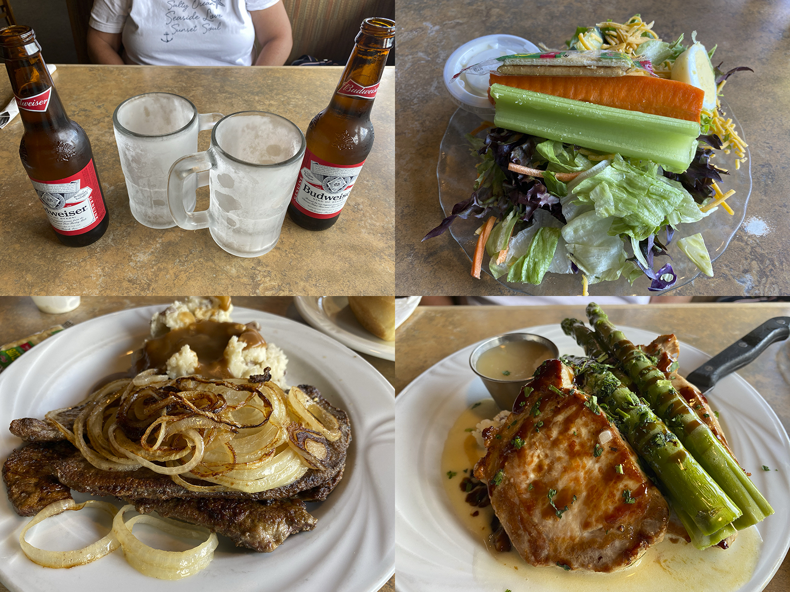 Gegenüber des Motels finden wir ein kleines aber einladendes Restaurant in dem wir zum Abendessen gehen. Und NEIN es gibt in Amerika nicht nur Burger, Hotdogs oder Steaks.