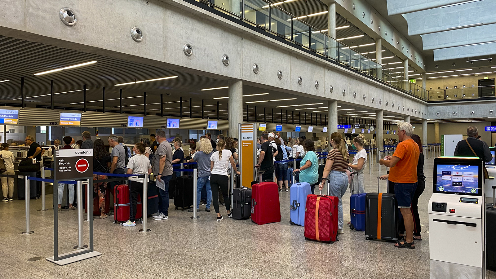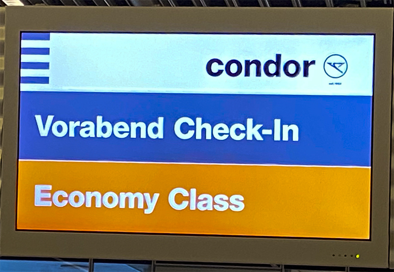 Zwei Tage vor der Abreise sind die Koffer bereits gepackt. Normalerweise packen wir die Koffer 1 Stunde bevor wir zum Flughafen fahren – aber nicht in diesem Jahr. Da wir in der Nähe des Frankfurter Flughafens wohnen, bietet sich der von Condor angebotene Vorabend-Check-In an. Eigentlich dachten wir hiermit entgehen wir dem lange Warten am Abflugtag in einer langen Schlange an den wenigen Check-In Schaltern. Eigentlich bedeutet hier dass auch andere diese Idee hatten. Als wir am Flughafen ankommen stehen bereits unzählige Leute am Schalter. Es sieht so aus als gäbe es auch das neue Iphone hier im Angebot und alle warten bis der Verkauf losgeht. Nach einiger Zeit haben wir es geschafft und sind somit unsere Koffer los. Wir hoffen dass wir sie dann morgen in Las Vegas wiedersehen.