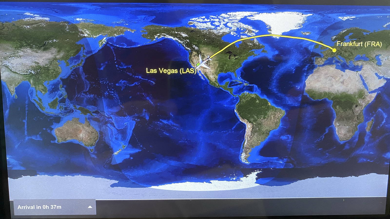 Wir überfliegen die östlichste Spitze Kanadas und müssen noch einmal quer über diesen riesigen Kontinent – von Ost nach West. Bei Winnipeg in Kanada dreht der Jet nach Süden Richtung Denver ab. Dann nehmen wir den direkten Kurs auf Las Vegas.