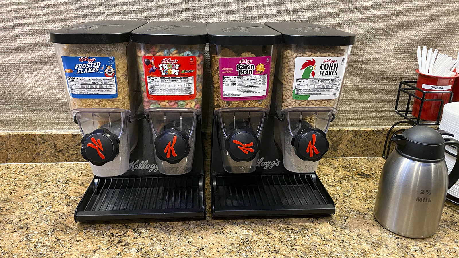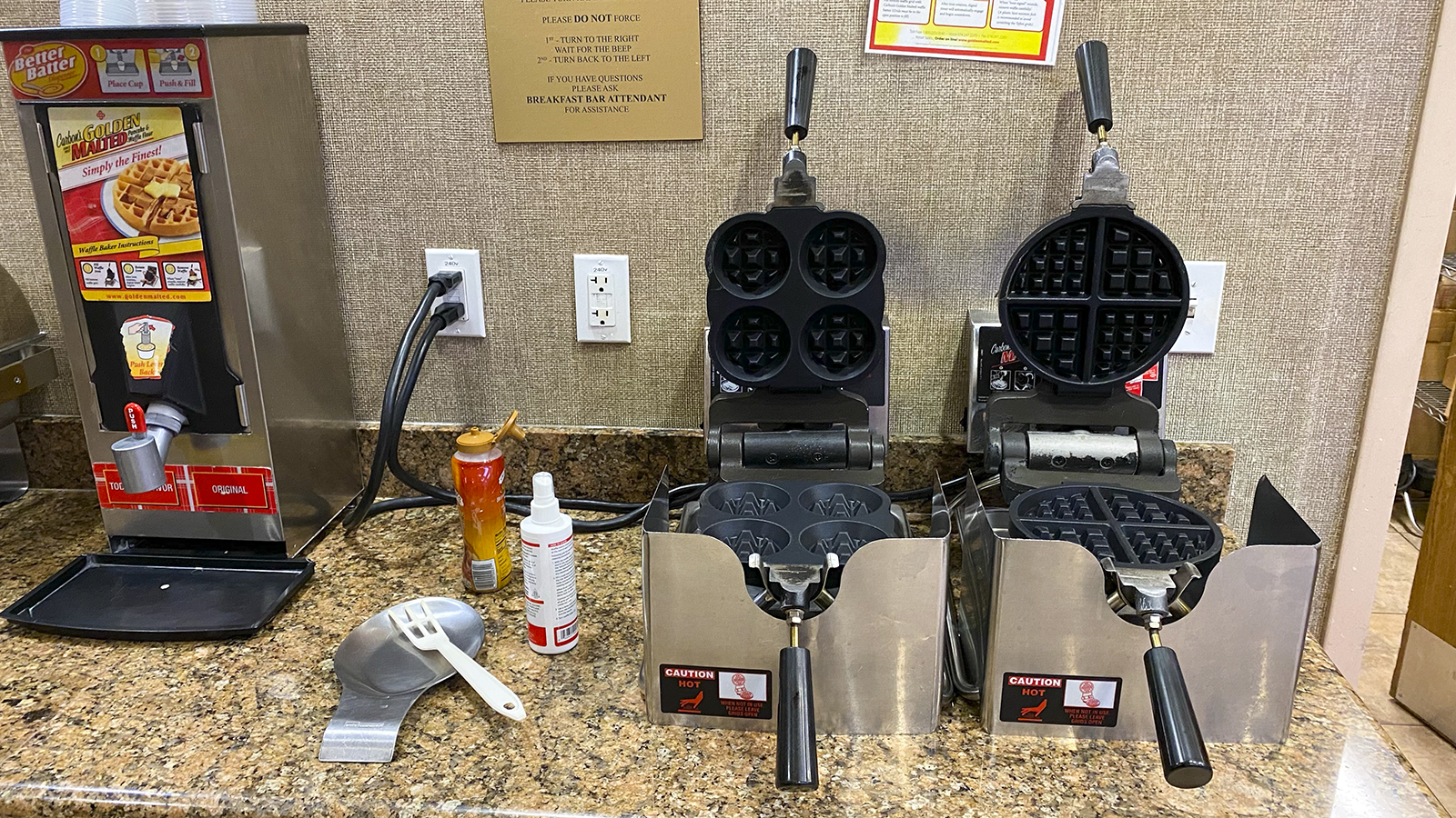 Wir sind die Ersten am typisch amerikanischen Frühstücksbuffet. Im Gegensatz zu vielen Motels in den USA ist dieses Frühstück sogar genießbar.