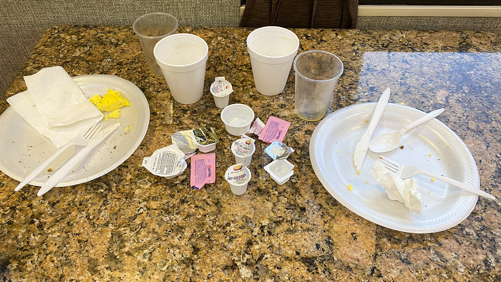 Jeder hier hinterlässt nach dem Frühstück einen kleinen Müllberg.