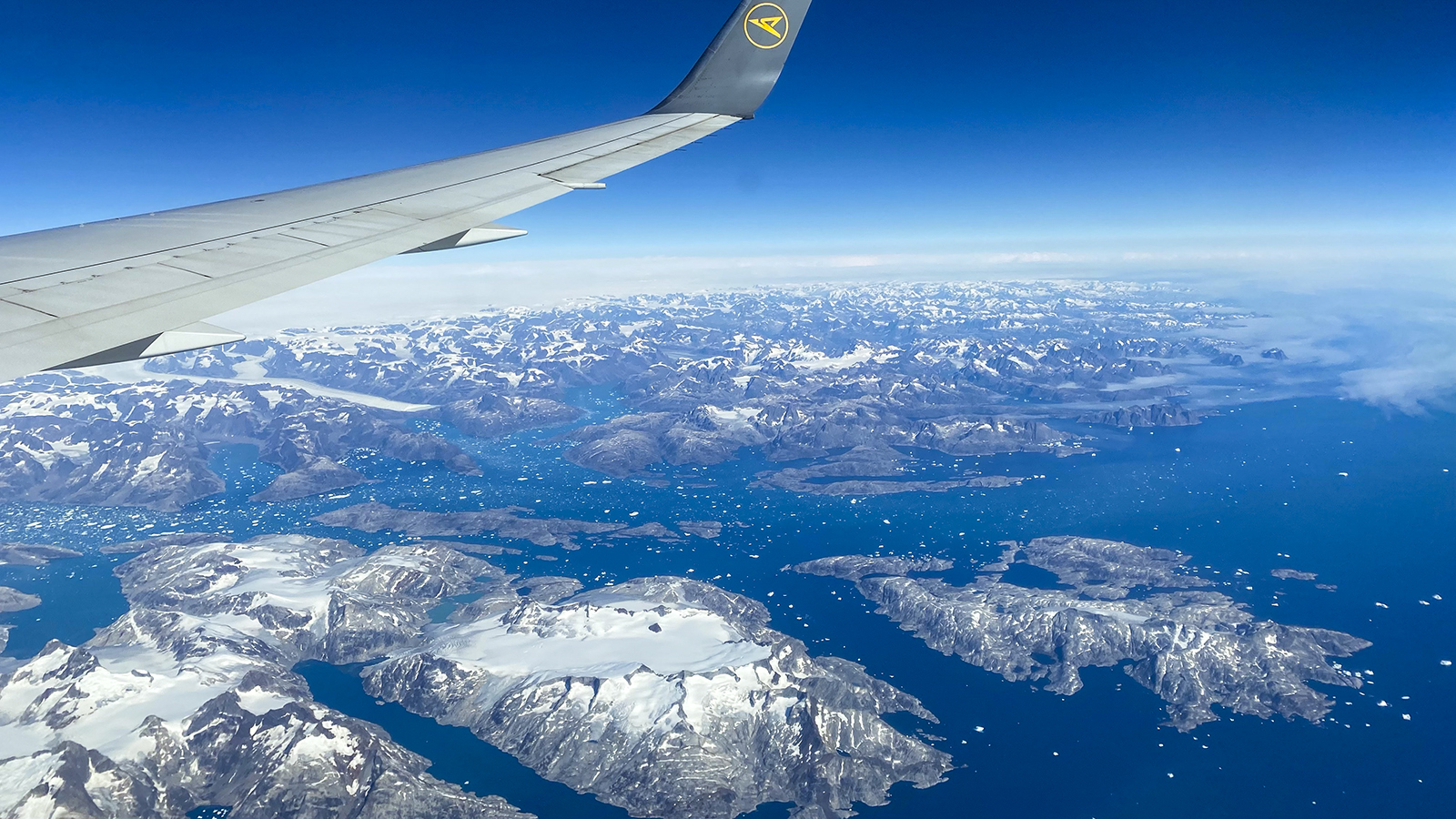 Nach etwas über einer Stunde überqueren wir den Ärmelkanal, nach viereinhalb Stunden überfliegen wir bereits die Südspitze Grönlands bevor wir nach knapp sechs Stunden den nordamerikanischen Kontinent erreichten.