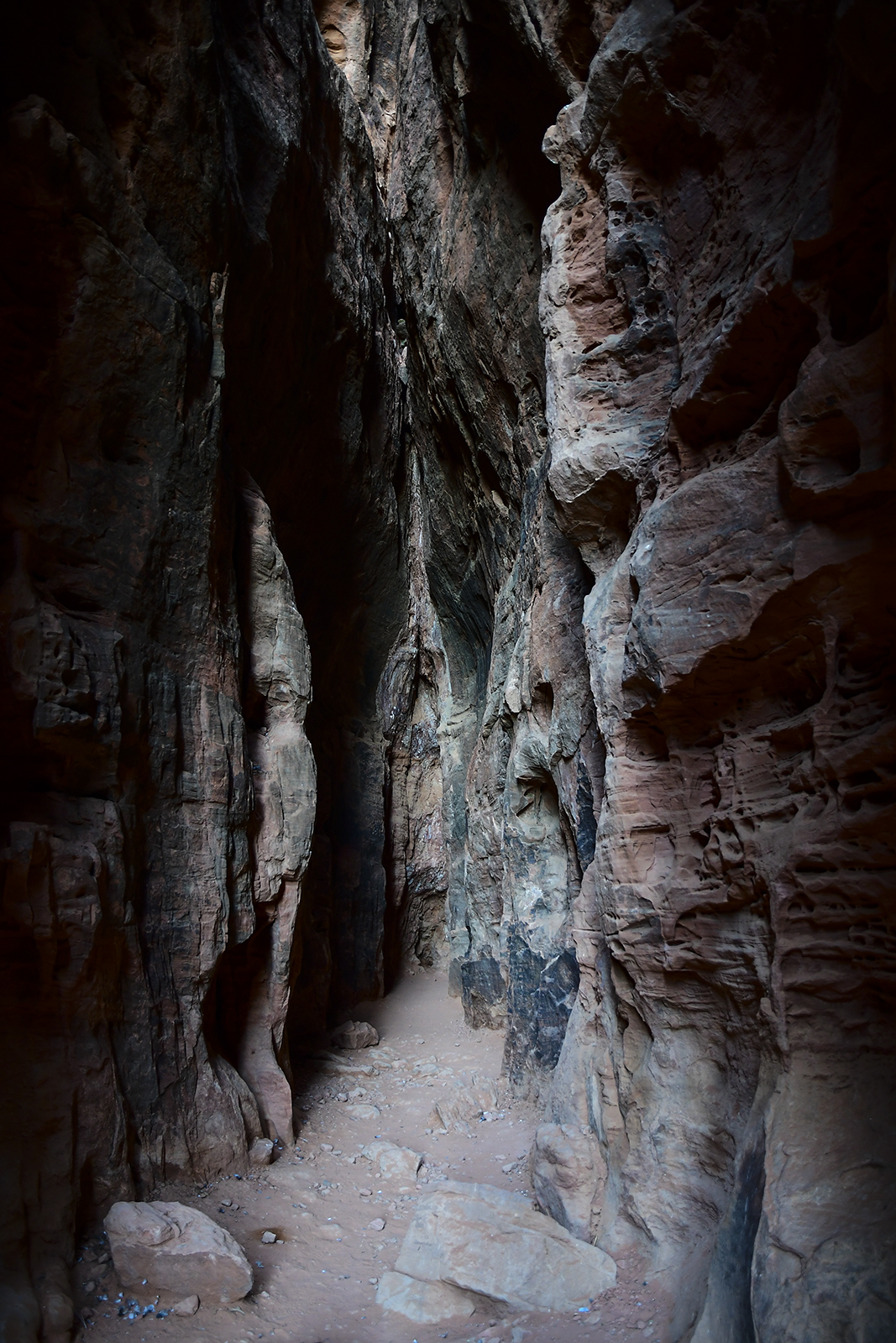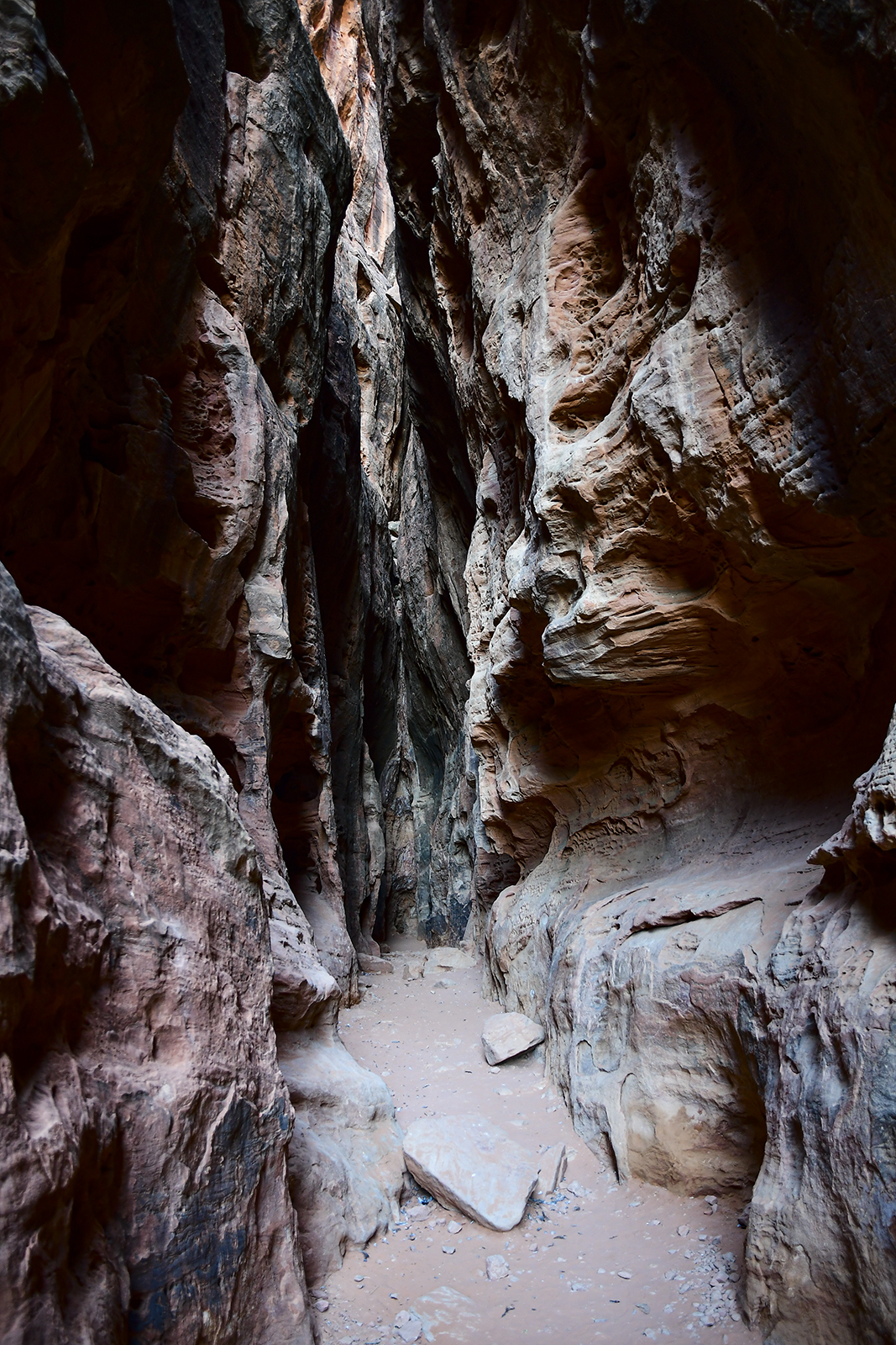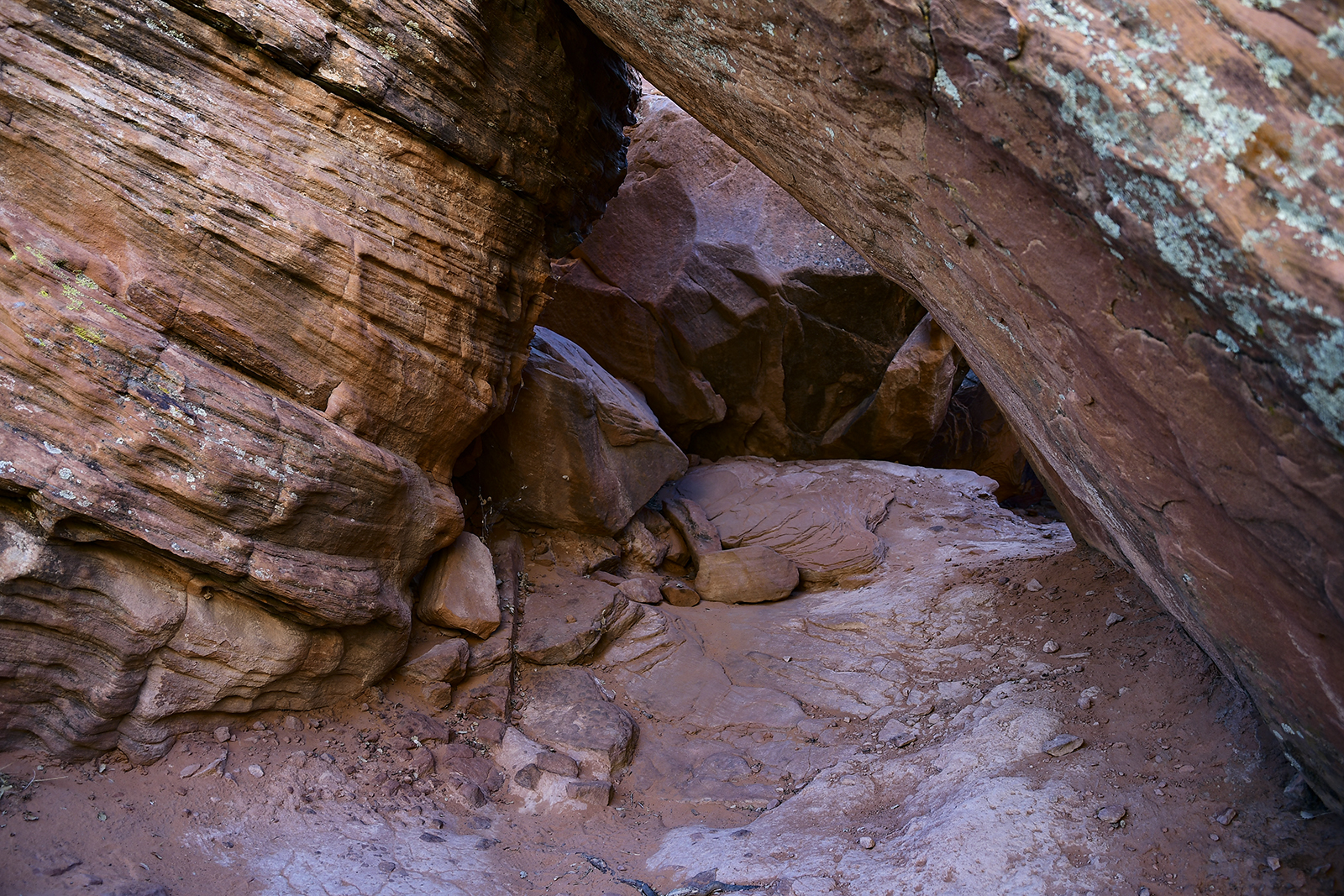 Nach einiger Zeit kommen wir an oder besser gesagt in einen kleinen Slot-Canyon an – nichts für Leute mit Platzangst.
