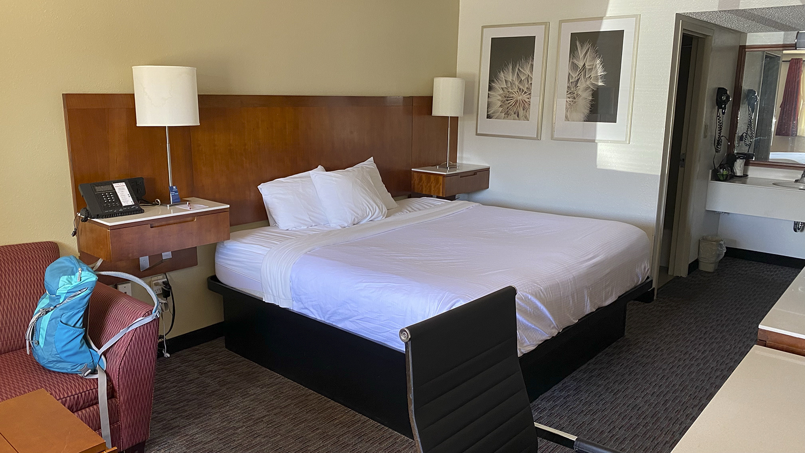 Es ist 0:5:45 Uhr am frühen Morgen. Eigentlich wollten wir etwas länger schlafen da wir heute im gleichen Motel bleiben, müssen wir nicht packen. Eigentlich heißt hier dass uns der ohrenbetäubende Lärm der Feuersirene aus dem Schlaf reißt. Da wir das in einem früheren Urlaub schon einmal hatten denke ich kurz bevor ich in eine Hose springe –