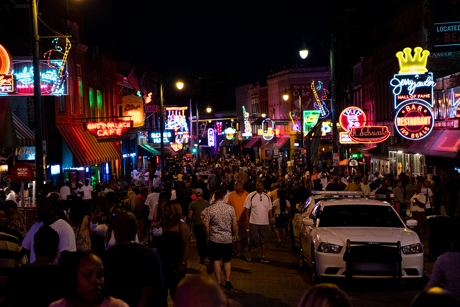 Die Polizei ist hier immer mit einem Großaufgebot zur Stelle. Schon am Eingang zur Beal Street werden wir kontrolliert wie an einem Flughafen.