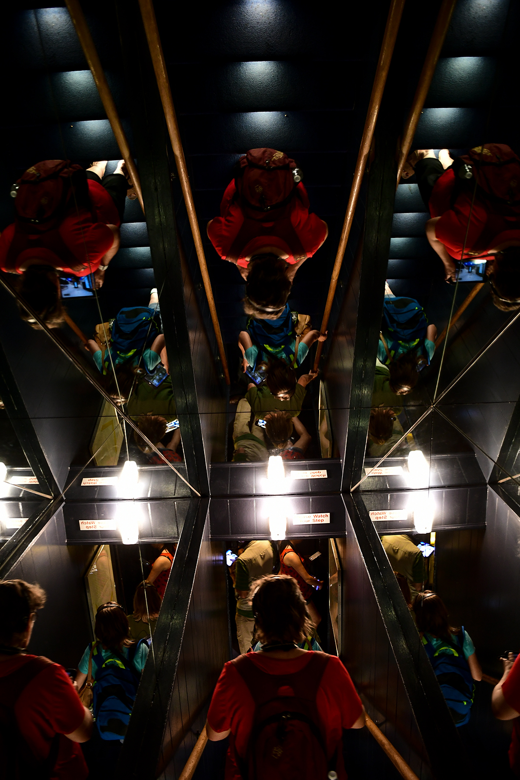 Dann geht es in den Keller. Der Gang ist komplett mit Spiegeln verkleidet.