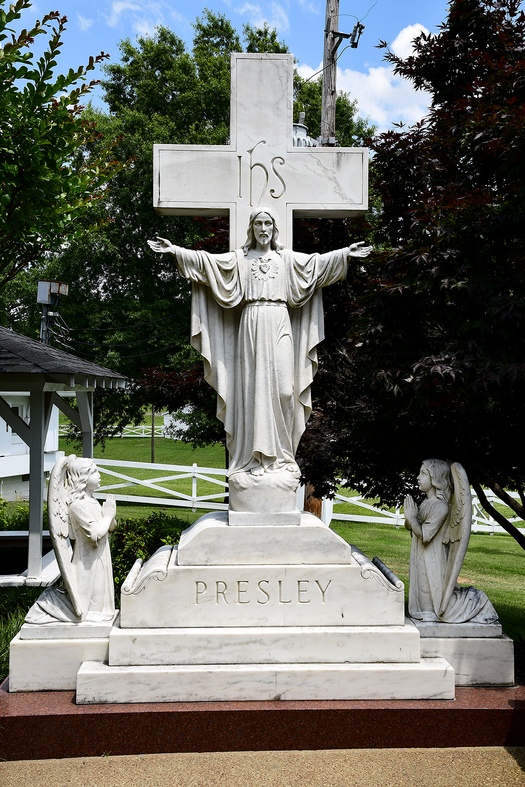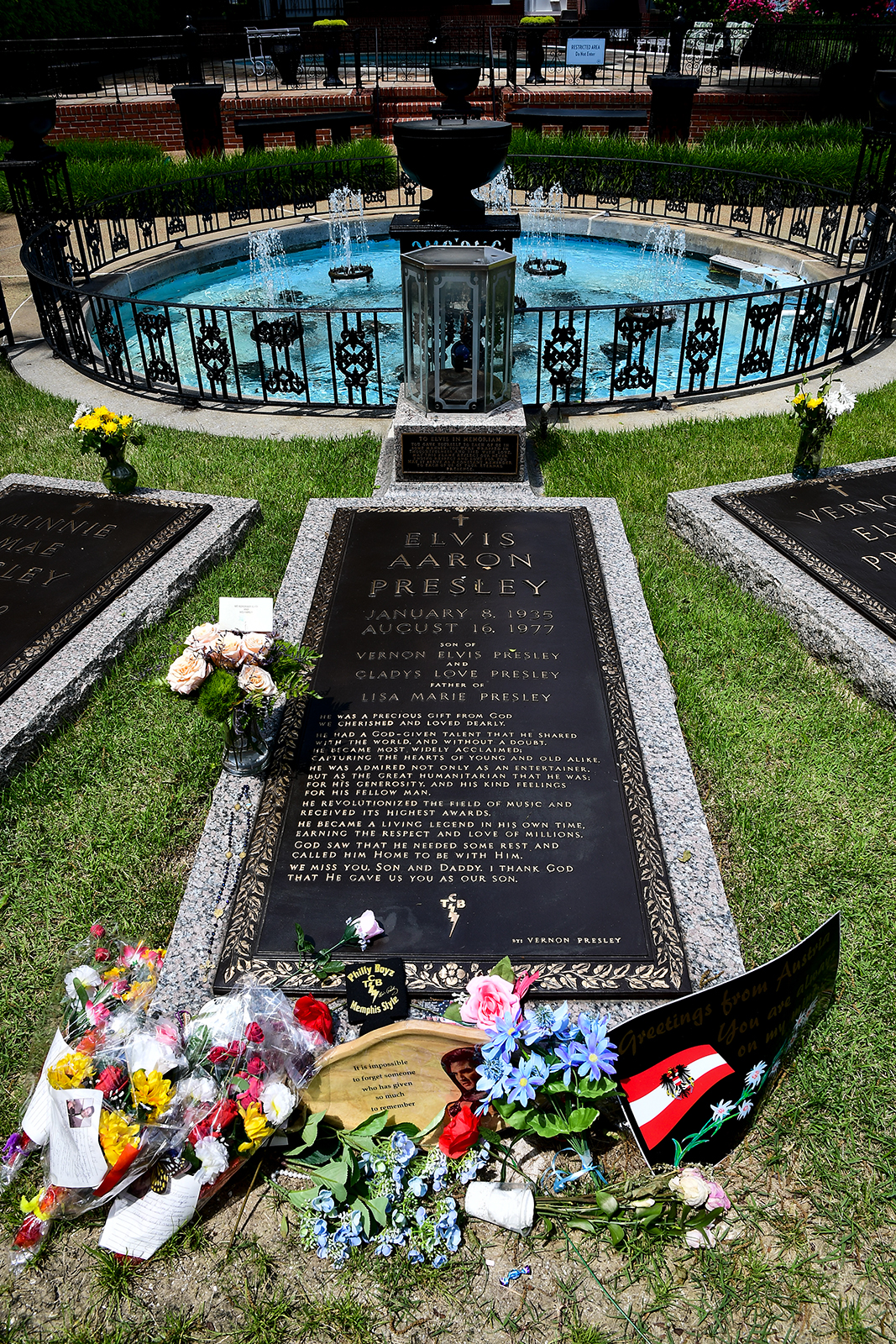 Hier im Außenbereich liegt Elvis im Kreise seiner Familie begraben.