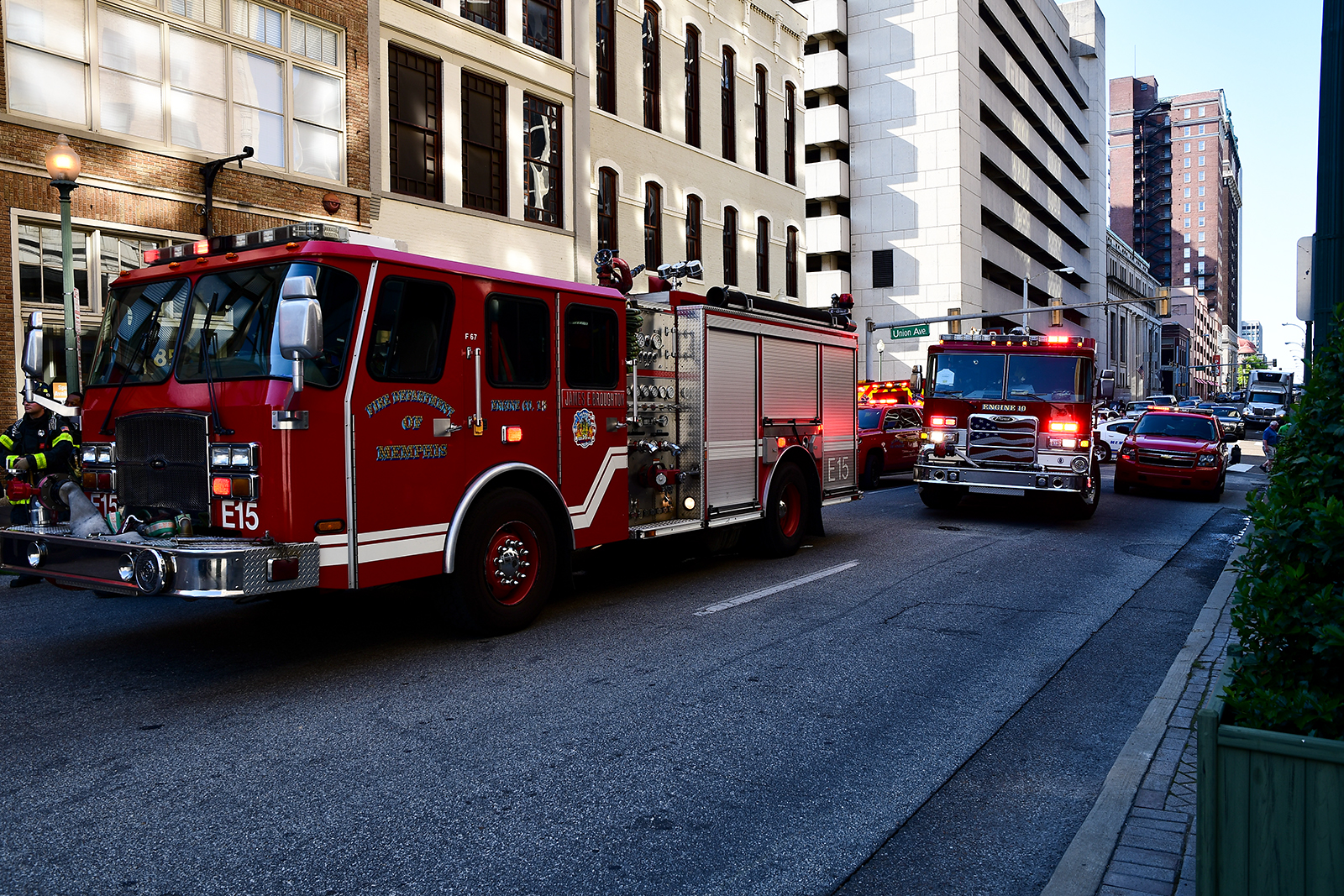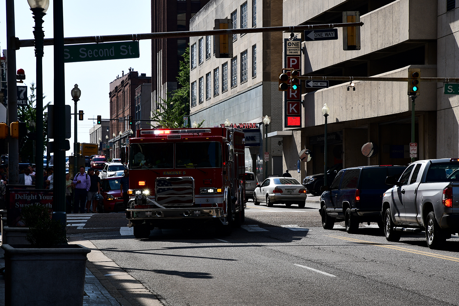 Ca. 30 Sekunden später schießt der erste Monster-Feuerwehrtruck an uns vorbei. Es folgen 2 nein 3 – 4 – 5 – 6 riesige Feuerwehrtrucks.