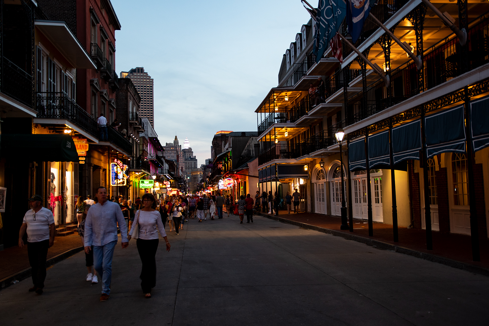 Die Dämmerung setzt ein und wir schlendern durch die bekannte Bourbon Street zurück zum Hotel.