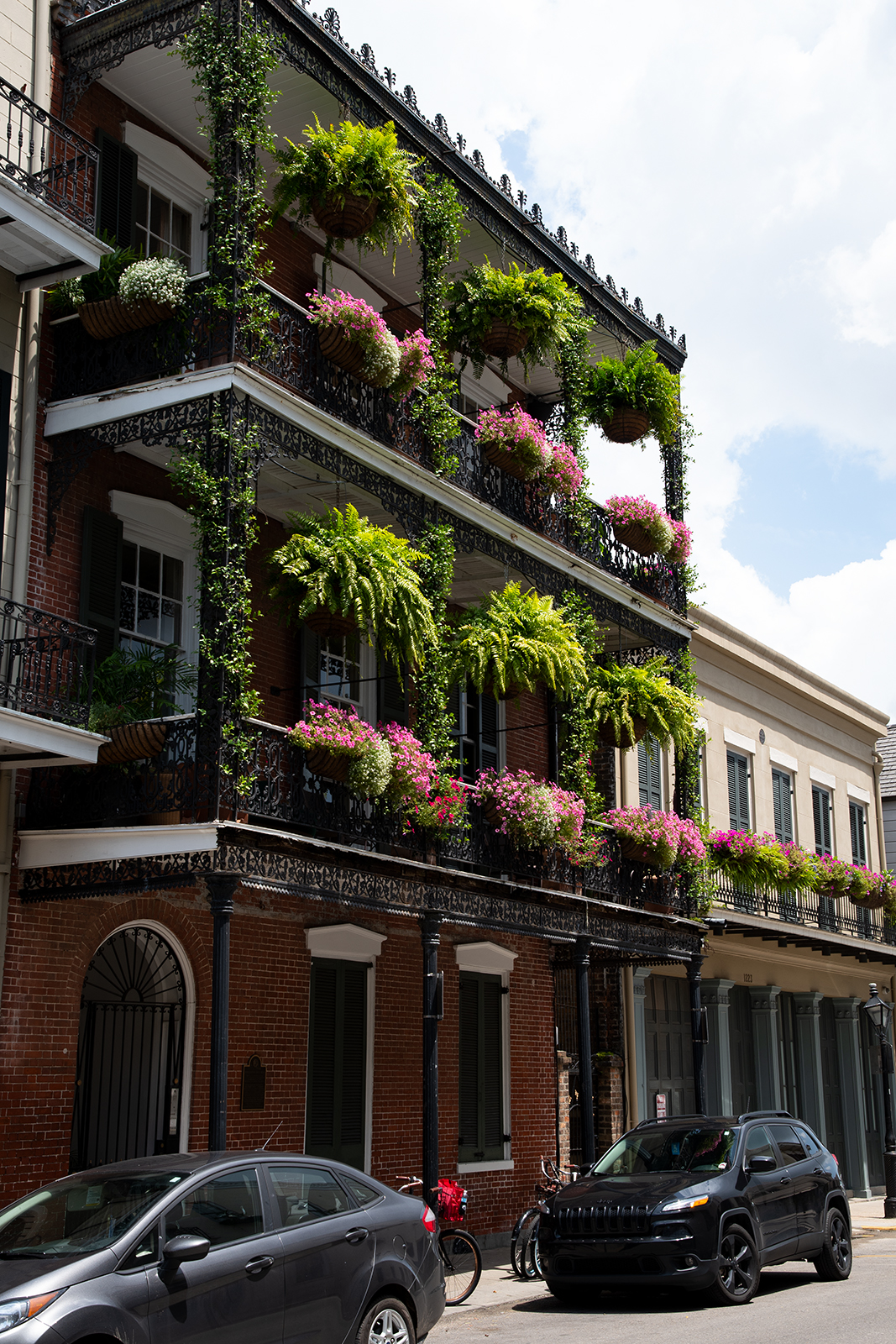 Es ist später Nachmittag, sonnig und wir haben 30 Grad. Wir beschließen noch etwas hier im French Quarter durch die Blocks zu ziehen. Hier sind wir nun im letzten Jahrhundert angekommen. Hier fühlt man sich in die goldenen Zeiten der Südstaaten Amerikas zurückversetzt. Prächtig geschmückte Herrenhäuser stehen links und rechts in den engen Gassen.