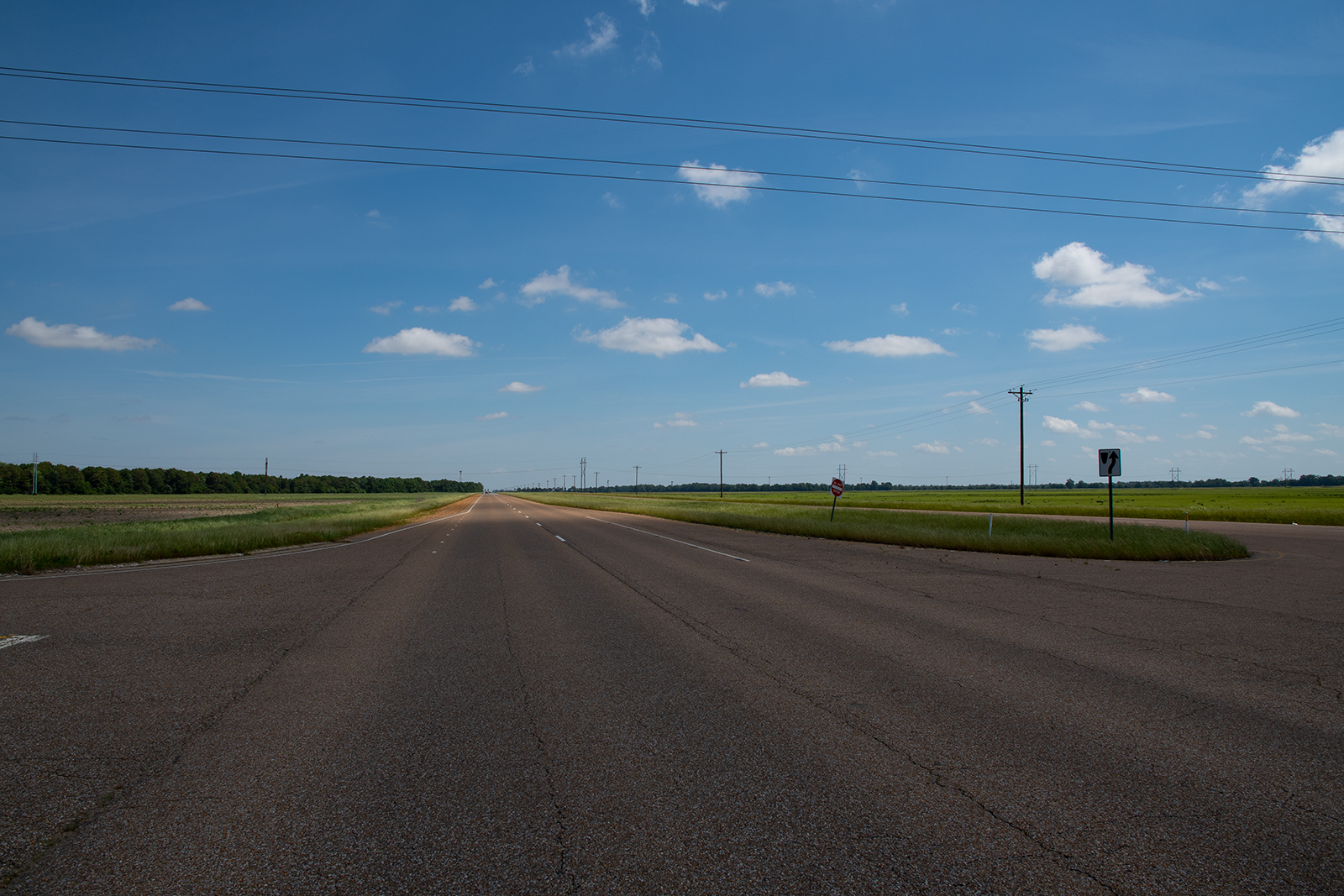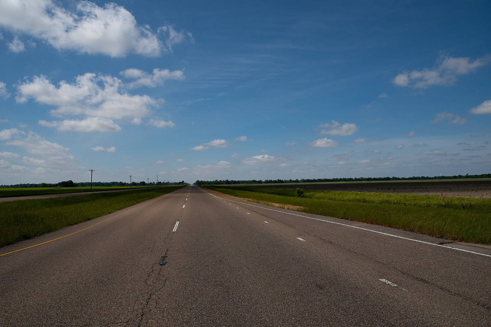 Wir fahren Hunderte von Kilometer vorbei an unendlich scheinenden Soja-, Mais-, und Baumwollfeldern. Stundenlang ist keine Menschenseele zu sehen. Die wieder schnurgerade Straße verschwindet immer wieder im endlosen und blauen Horizont.