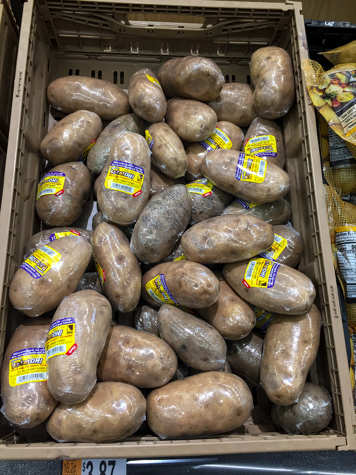In anderen riesigen Ländern werde dafür die Kartoffeln einzeln in Plastikfolie eingeschweißt.
