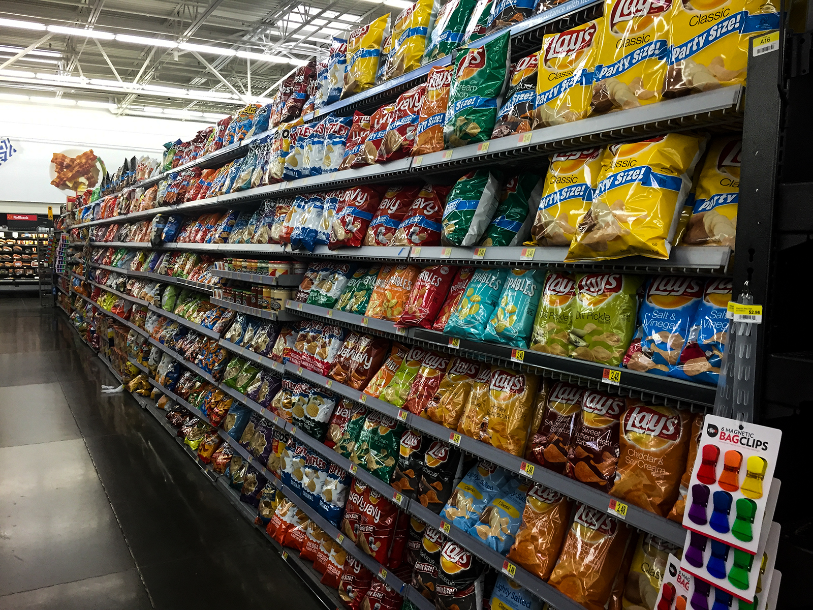 Natürlich gibt es auch 3 Gänge mit Chips in ca. 1000 Sorten und Geschmacksrichtungen.