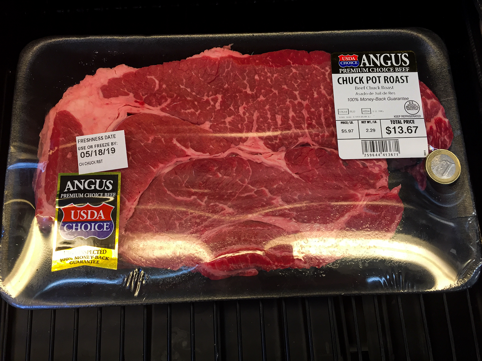 Hier für die kleinen Verpackungen von Hackfleisch (ca. 5 Kg), einem kleinen Steak (2,29lbs = 1,039Kg), etwas Zucker (4,5Kg) und einer Minipizza (1,2Kg)