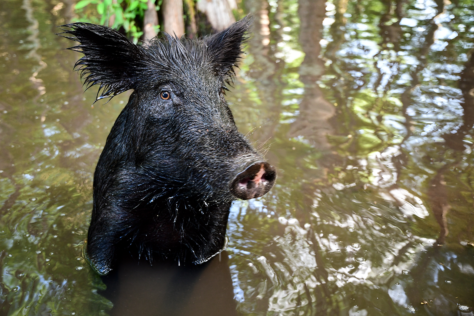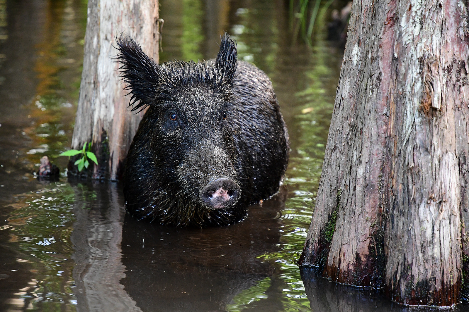 Chris erklärt uns dass diese Schweine die gefährlichsten Tiere hier im Sumpf sind. Er ist hier aufgewachsen und lebt hier seit über 30 Jahren. Zwischenfälle oder Unfälle mit Alligatoren und Menschen gibt es und gab es hier noch nie.