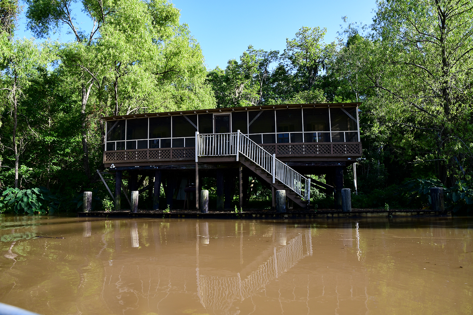 Plötzlich taucht er ab und ist verschwunden. Wir setzen die Fahrt fort und kommen an einigen Häusern vorbei. Hier tief im Sumpf leben heute immer noch Menschen.