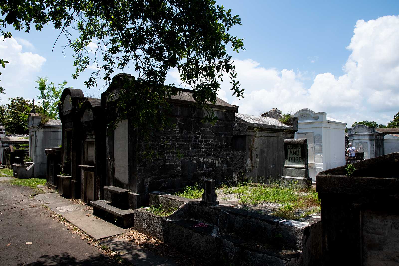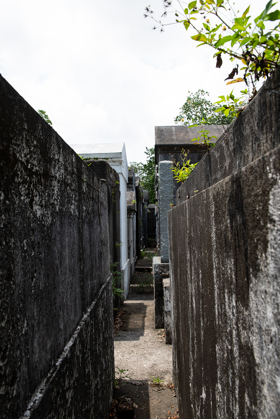 Bei jedem Geräusch zucken wir zusammen bleiben stehen und lauschen in die Stille. Wir machen jeden Schritt sehr vorsichtig um keine Geräusche zu verursachen. Teilweise sind die Grabmale mit alten Farnen überwuchert. Teilweise sind die Platten mit den Namen zerbrochen oder die Mauern der Gruften zerfallen. Bei jedem Schritt stellen sich die Nackenhaare. Trotz der 33 Grad spüre ich eine innere Kälte. Nach einer Stunde verlassen wir das Reich der Toten und besuchen den Garden Distrikt.