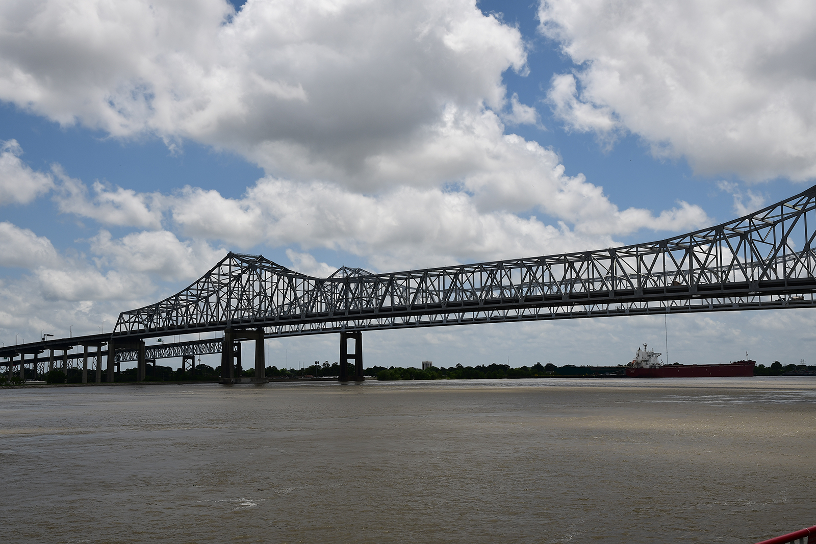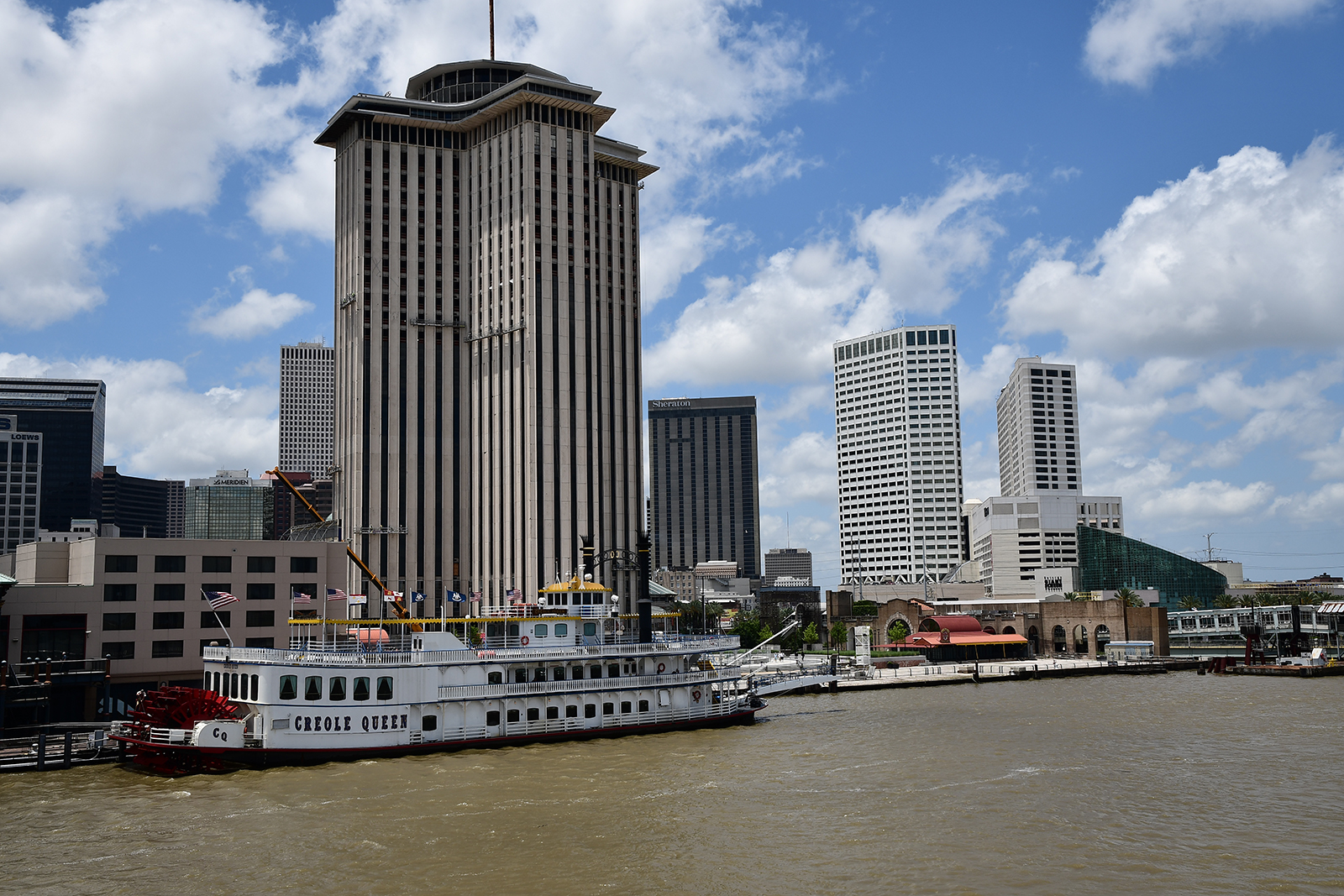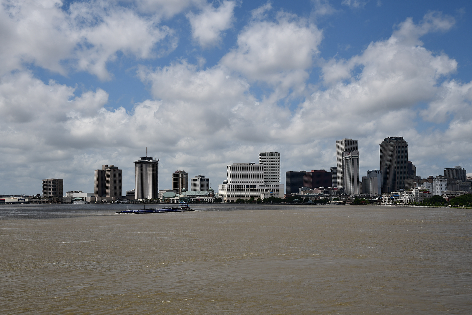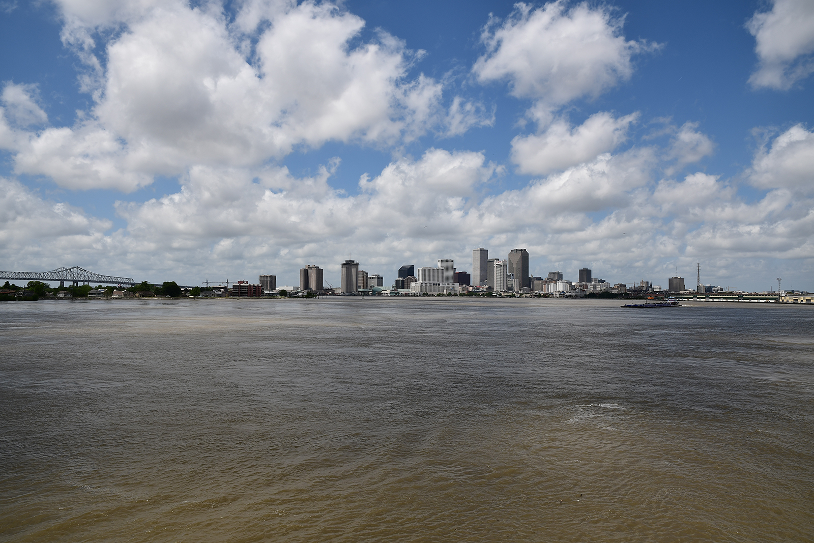 Immer weiter geht es Flussabwärts. Langsam wird New Orleans immer kleiner am Horizont und wir haben einen herrlichen Ausblick auf die Silhouette der Stadt.