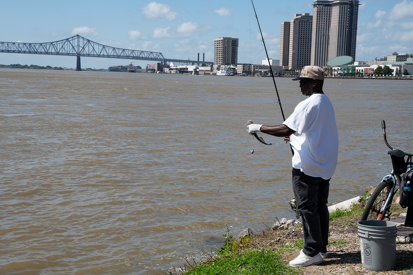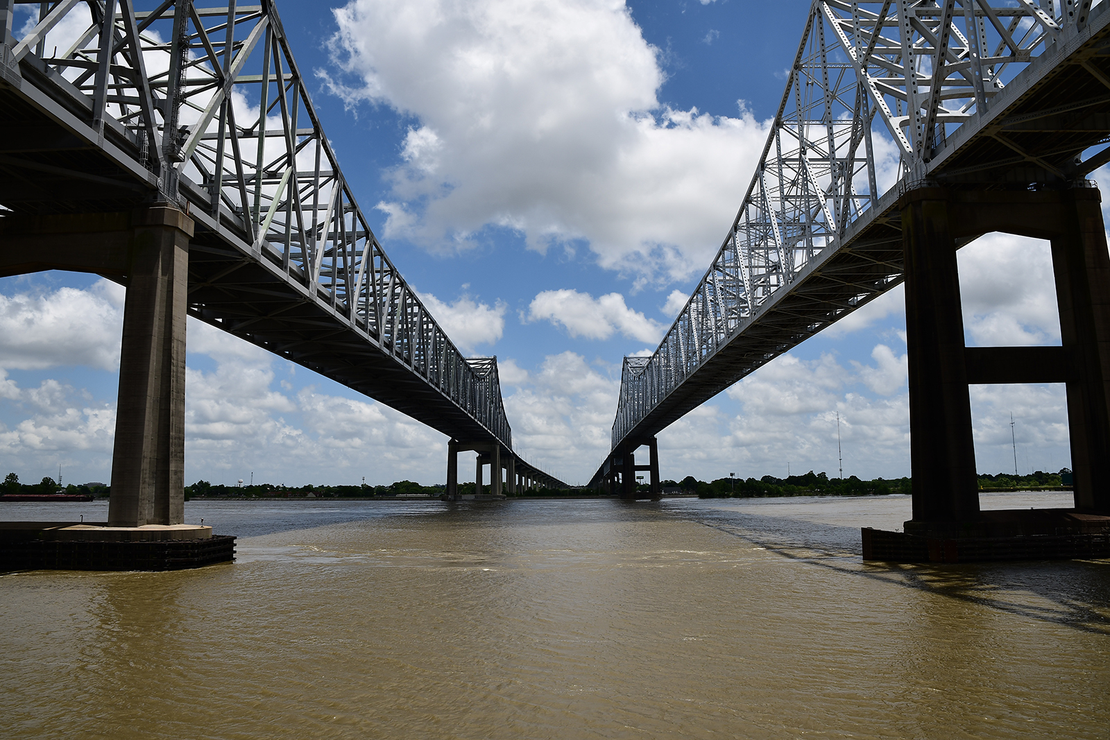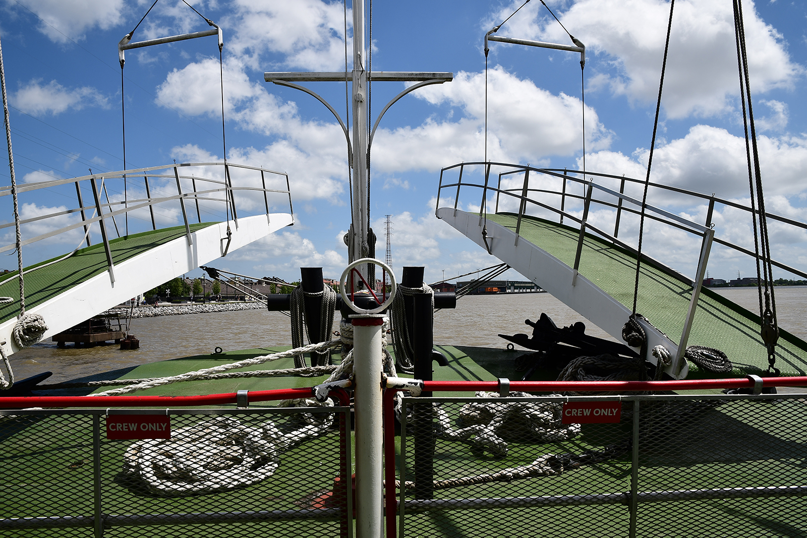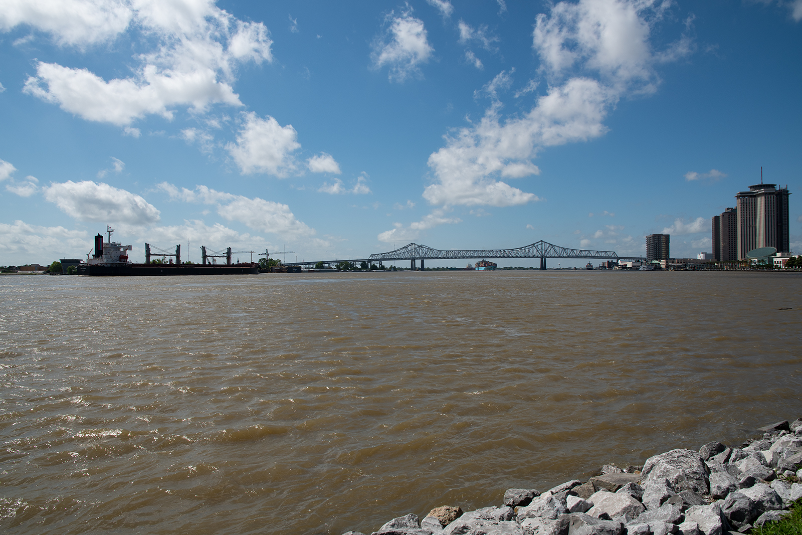 Immer weiter geht es Flussabwärts. Langsam wird New Orleans immer kleiner am Horizont und wir haben einen herrlichen Ausblick auf die Silhouette der Stadt.