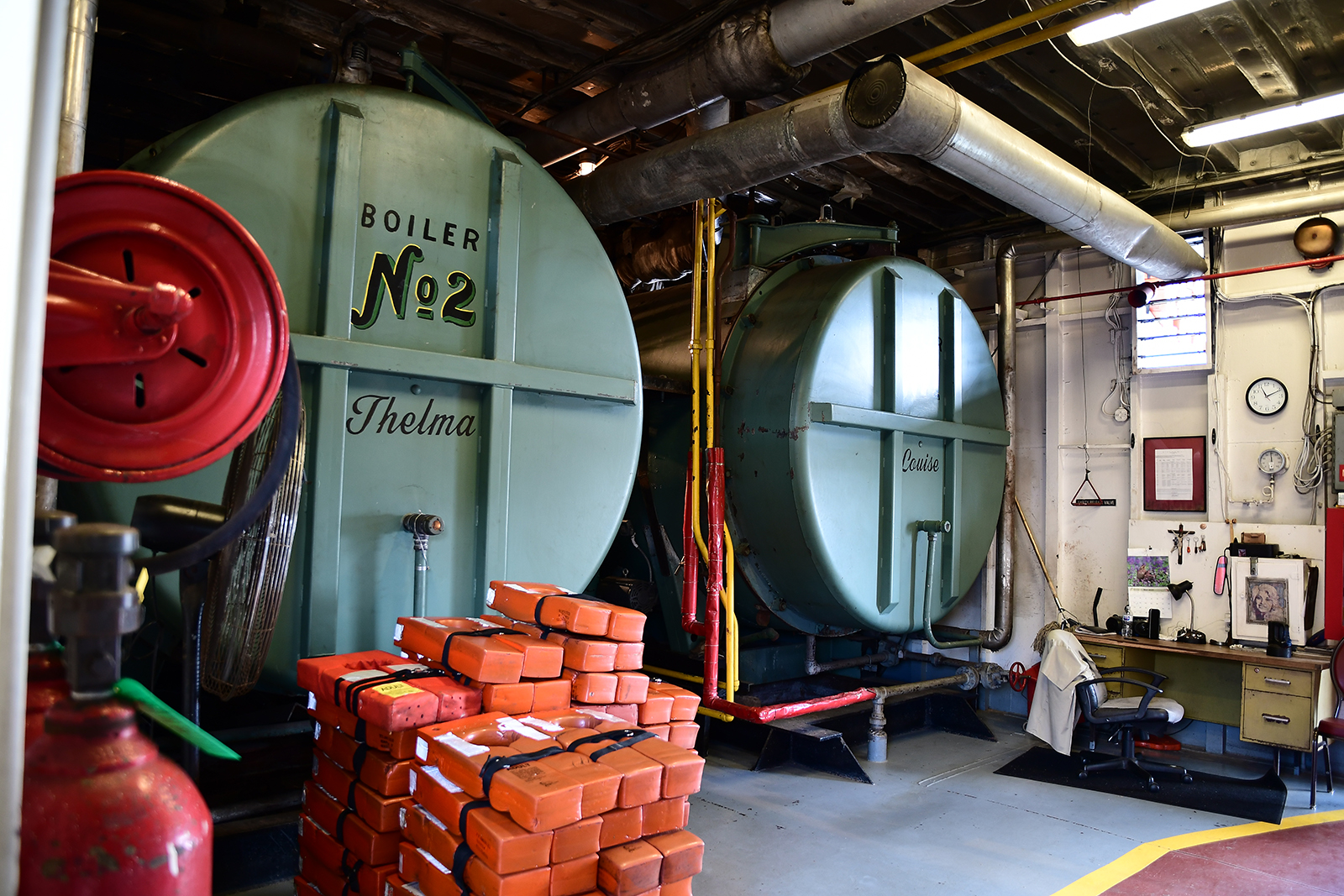 Zum Abschied verabschiedet sich die alte Lady mit einem ohrenbetäubenden Signal aus dem Dampfsignalhorn.