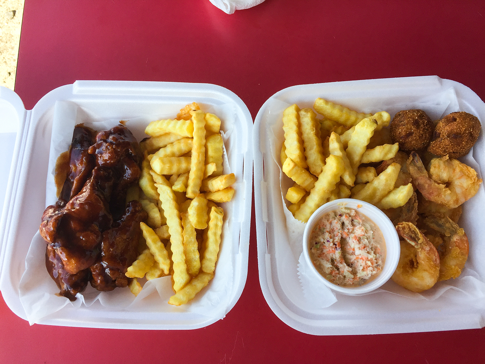 Unterwegs, irgendwo im Nirgendwo sehe ich am Highwayrand ein kleines Restaurant – ein sehr kleines Restaurant und wir bekommen Hunger. Kurz wird der Blinker gesetzt und wir machen eine Pause. Das typische Südstaaten-Essen wird frisch zubereitet und war sehr lecker.