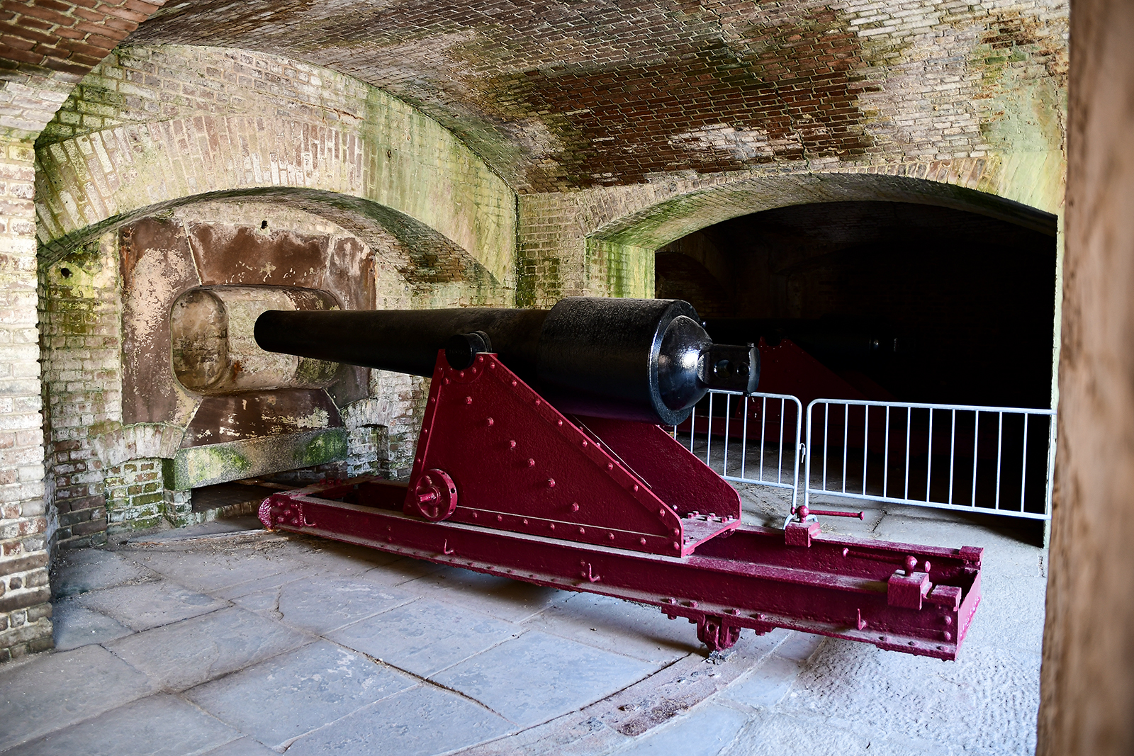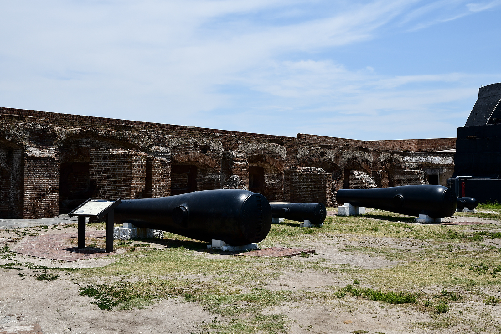 Nach kurzer Fahrt kommen wir in Fort Sumter an. Hier haben wir eine Stunde Zeit um uns im Fort umzusehen. Riesige Kanonen haben damals die Nordstaaten abgehalten in Charleston einzudringen. 16 Monate versuchten die Nordstaaten diese Festung mit massivem Beschuss in die Knie zu zwingen. Es gelang ihnen nicht. Erst nach dem Ende des Bürgerkrieges wurde das Fort evakuiert.