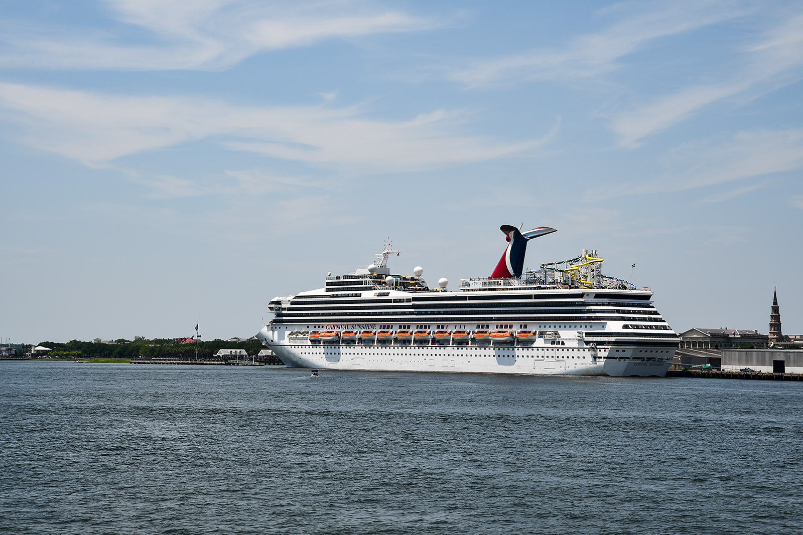 Im Hafen liegt ein großes Kreuzfahrtschiff das wir passieren.