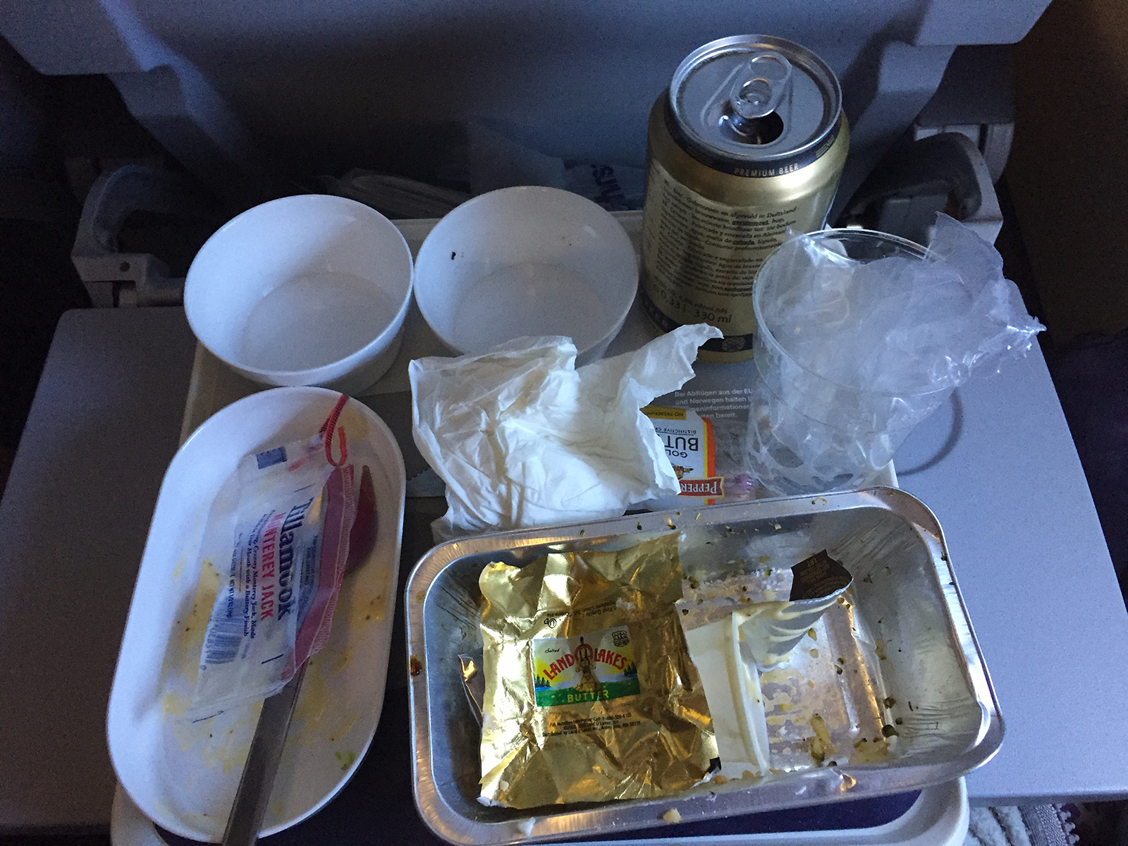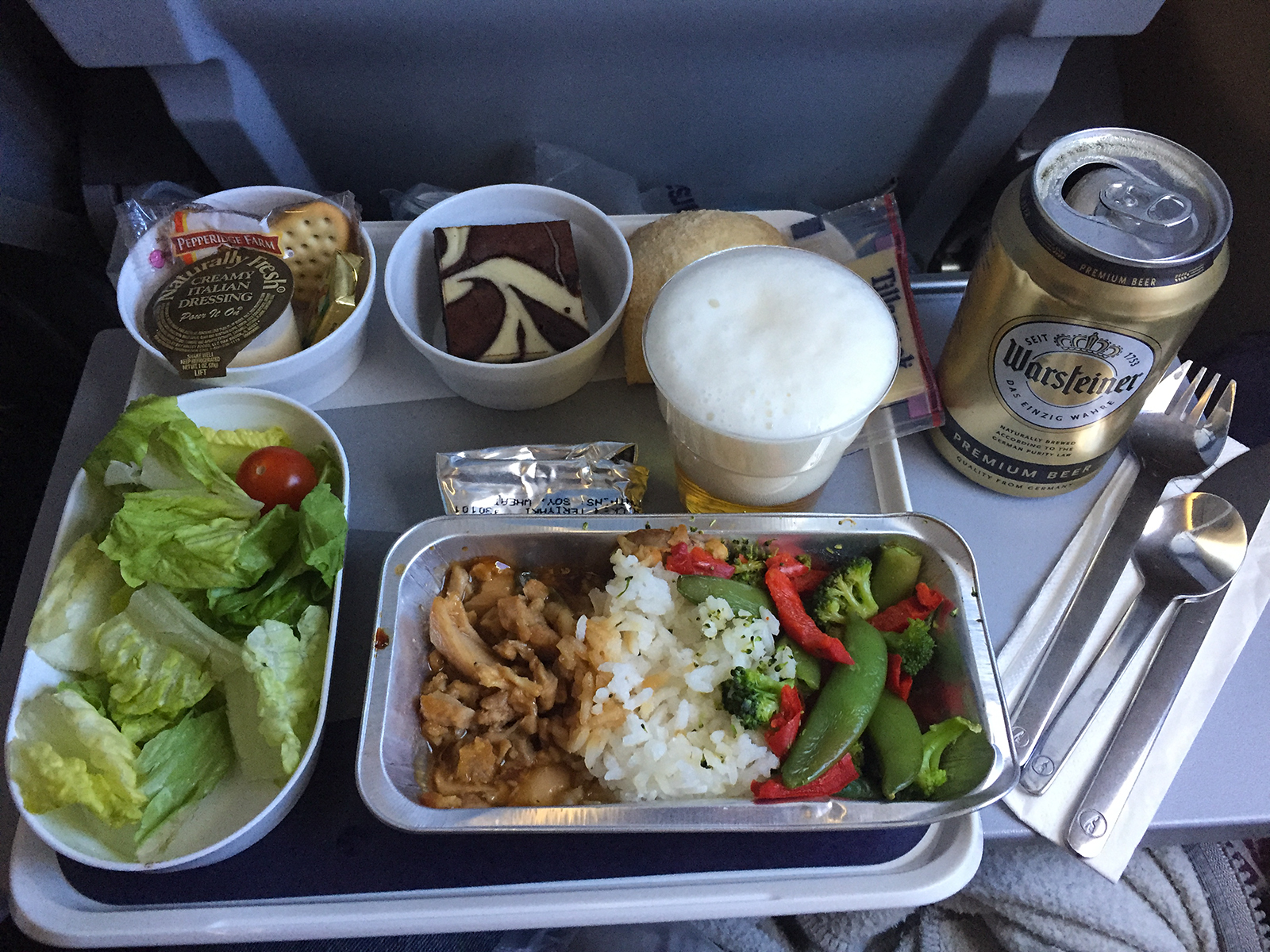Es gibt natürlich, wie schon auf dem Hinflug, chinesisch. Ich denke das hatten sie von dem Herflug noch übrig.