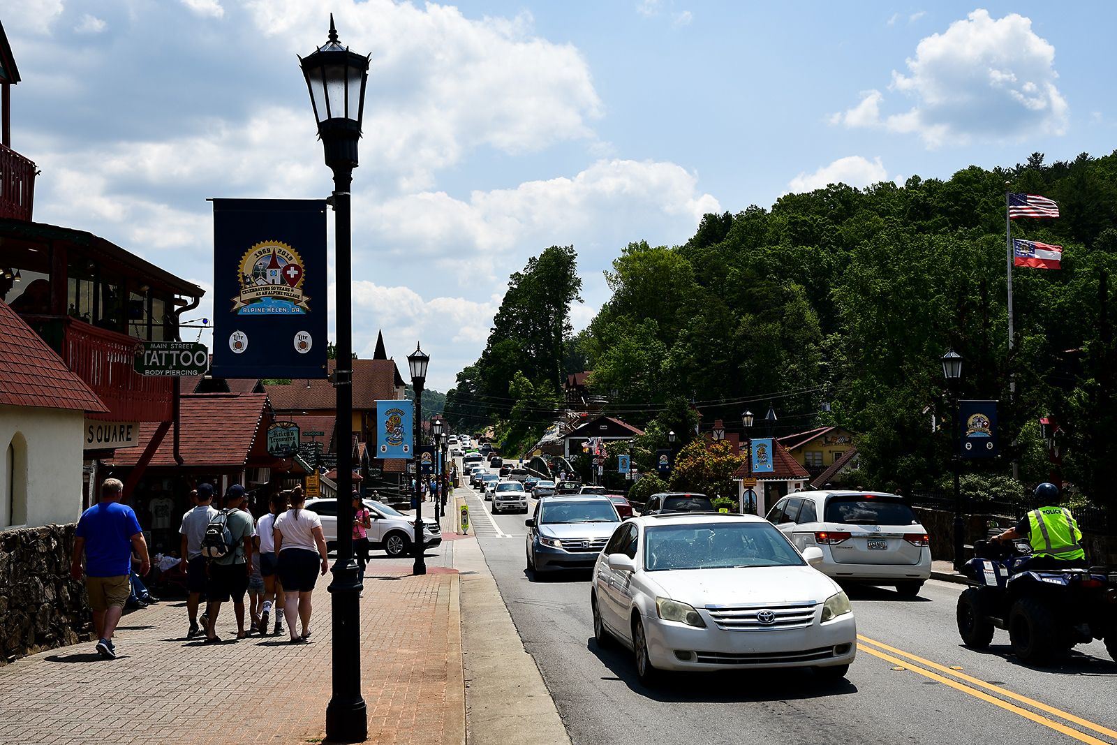 Als wir durch Helen fahren um einen Parkplatz zu suchen sieht es wirklich fast wie in einem kleinen Ort im Süden Deutschlands aus – die Fassade zumindest.