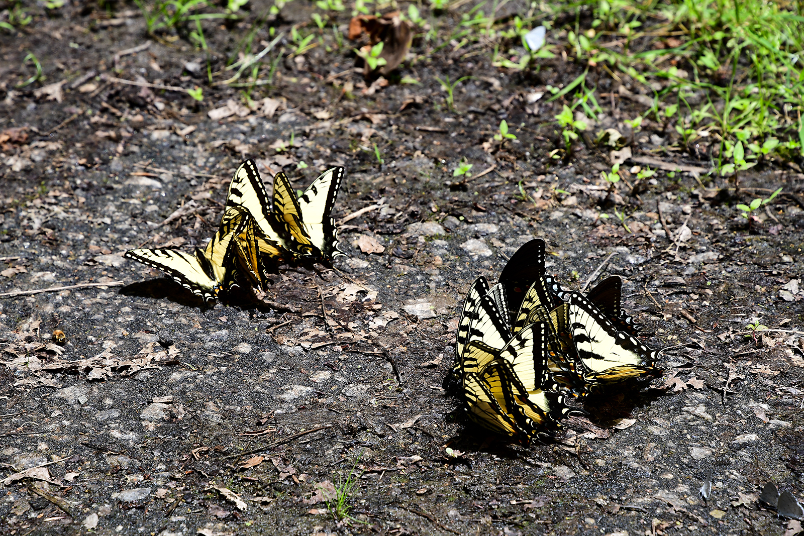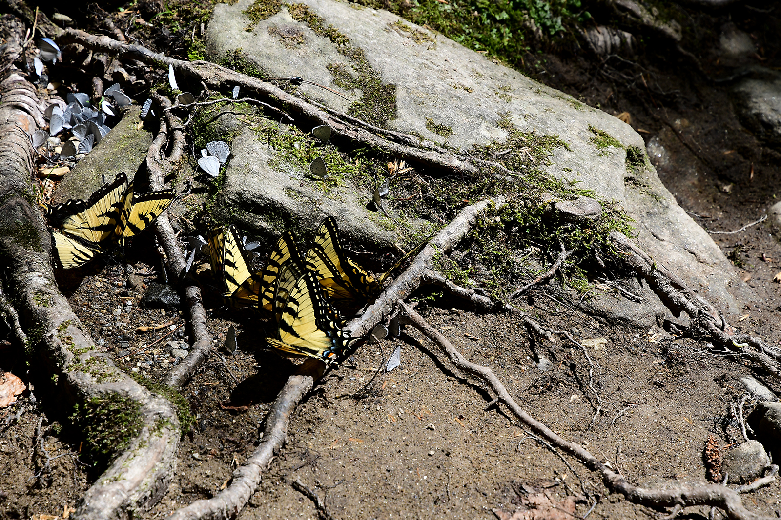 Überall an den Ufern der Bäche sitzen große Kolonien mit großen und kleinen Schmetterlingen.