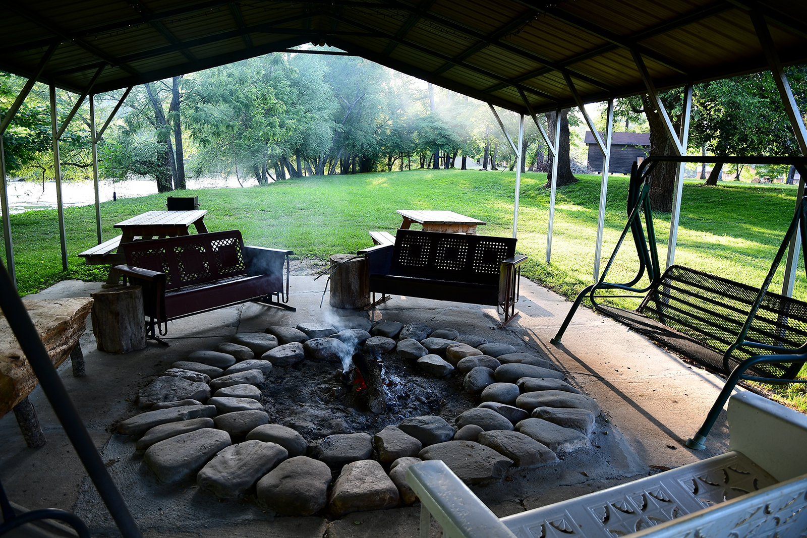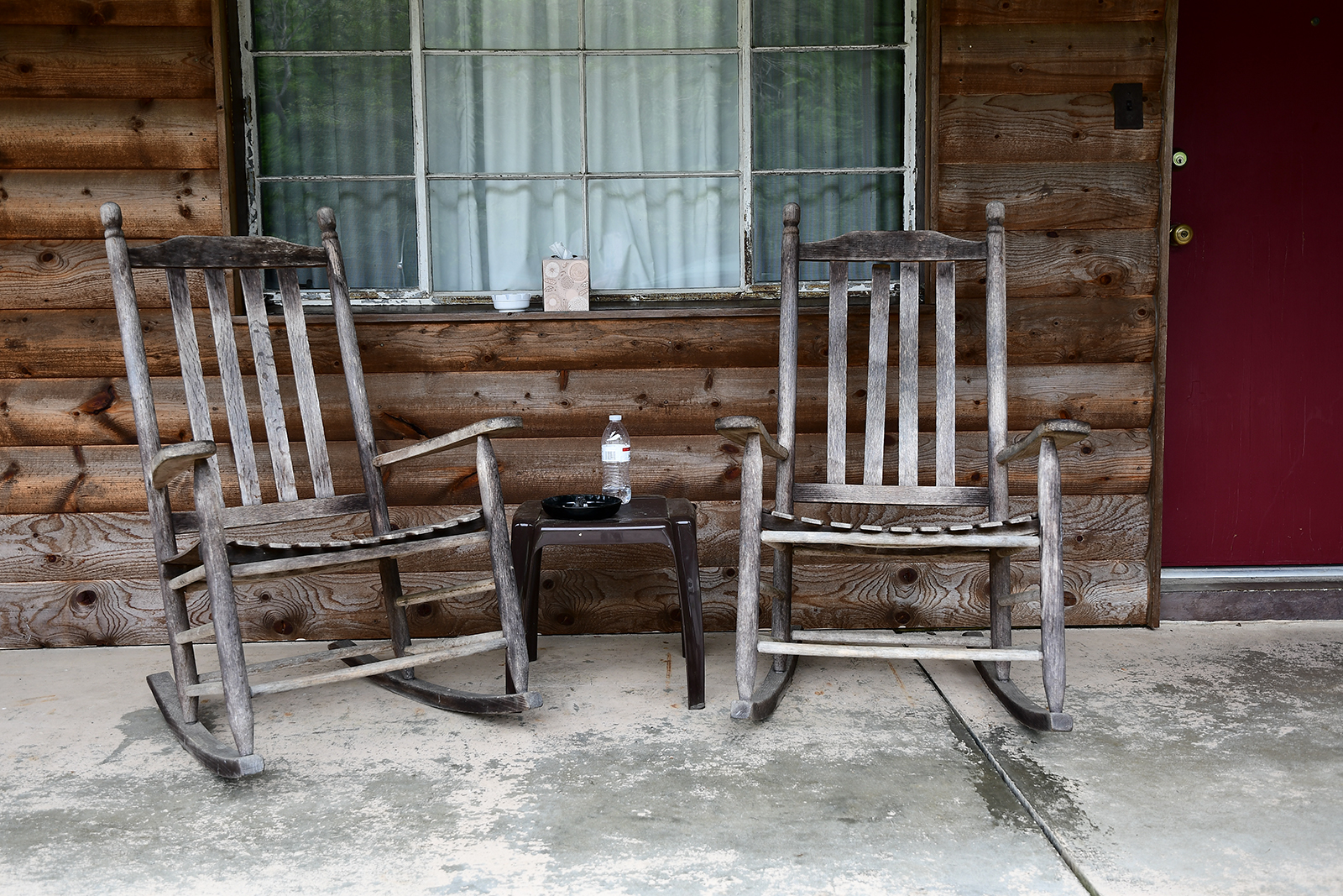 Am frühen Abend erreichen wir unser Motel das mitten in der Wildnis liegt. Mitten im Wald an einem Fluss und einem großen Garten mit Sitzmöbeln, Schaukelstühlen und einer Feuerstelle.