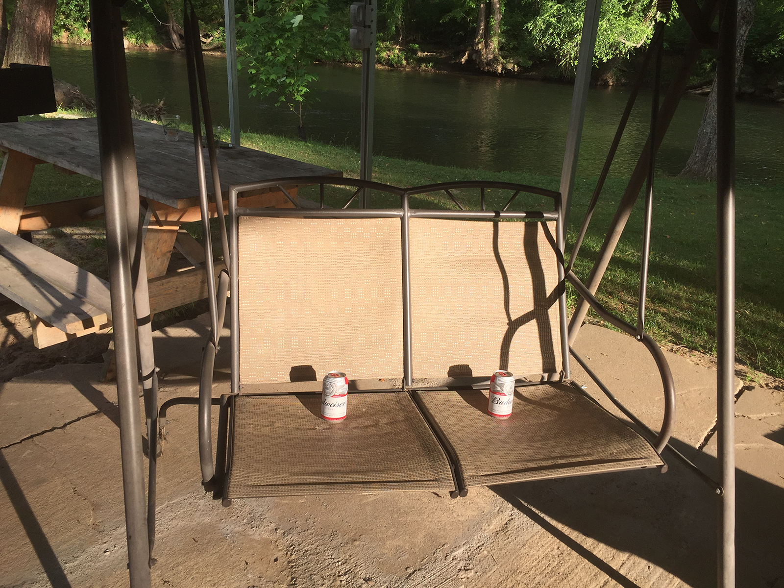 Wir fahren zum Motel und setzen uns mit einem Bier an den Fluss.
