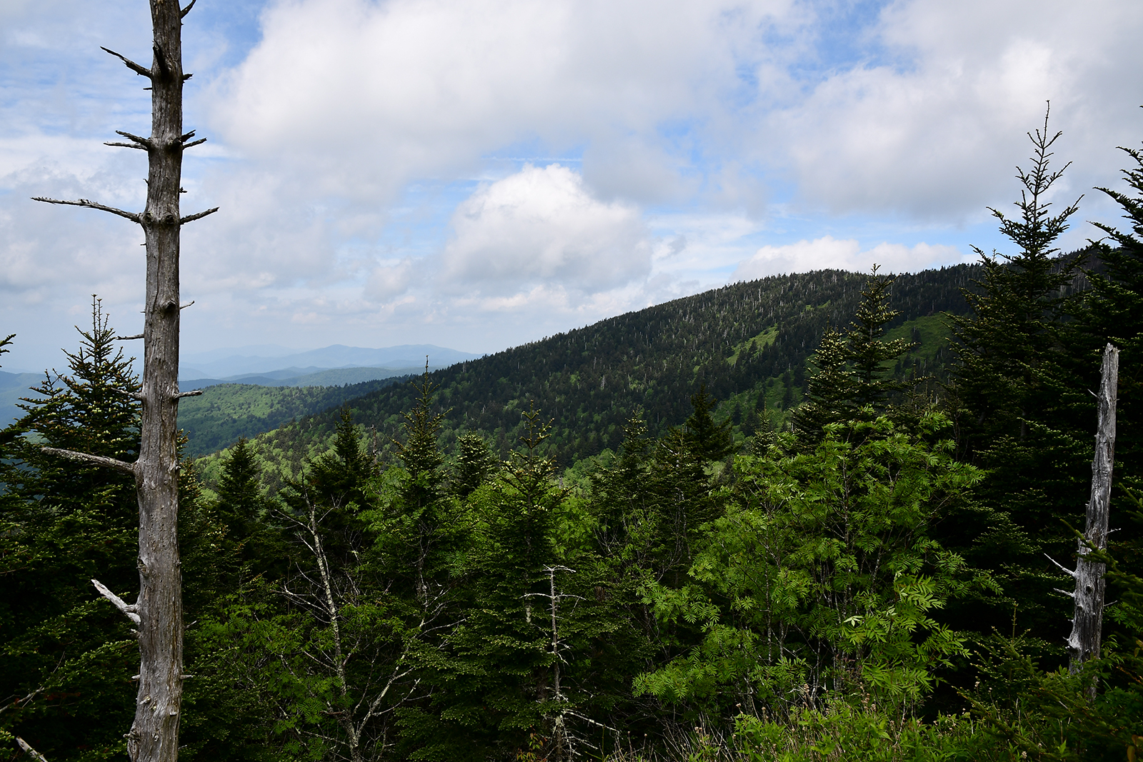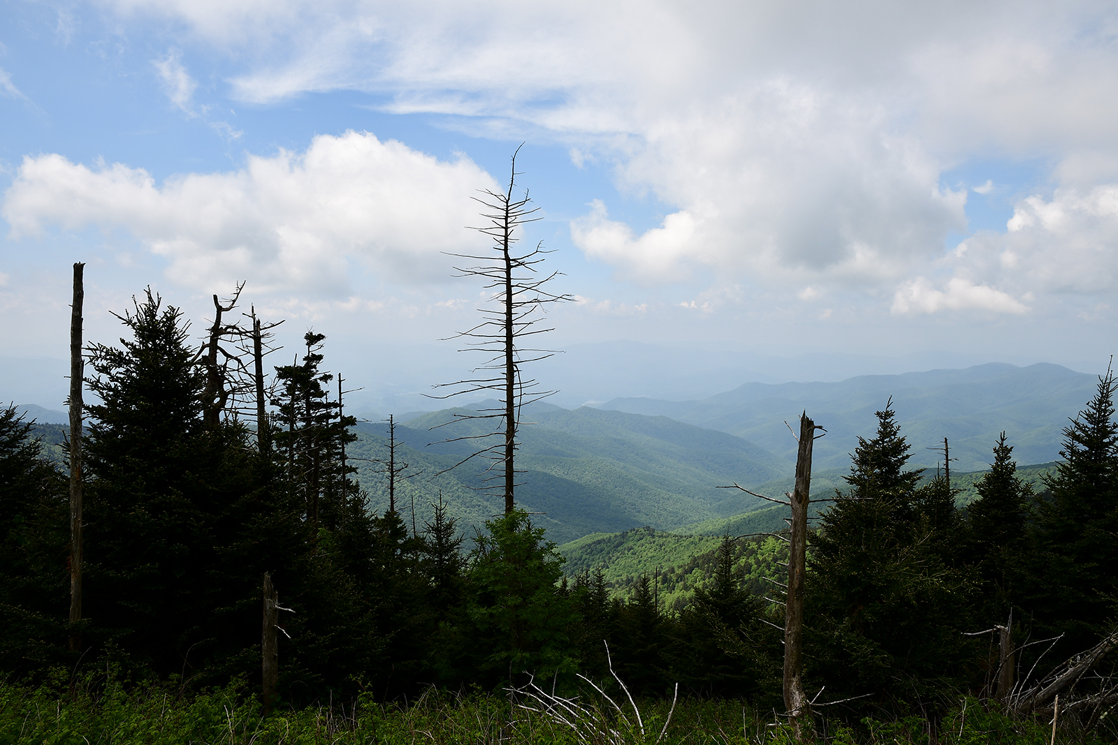 Great Smokey Mountains. Der Clingmans Dome liegt auf über 2000 Meter mitten in den einsamen Bergen. Hier sehen wir auch warum die Great Smokey Mountains so genannt werden.