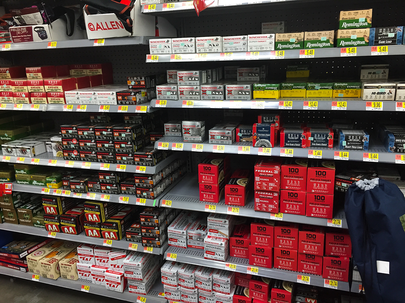 Auch ist es für uns immer noch seltsam wenn wir im Supermarkt neben dem O-Saft, den Schokoriegeln und dem Kinderspielzeug Unmengen an Waffen und Munition vorfinden.