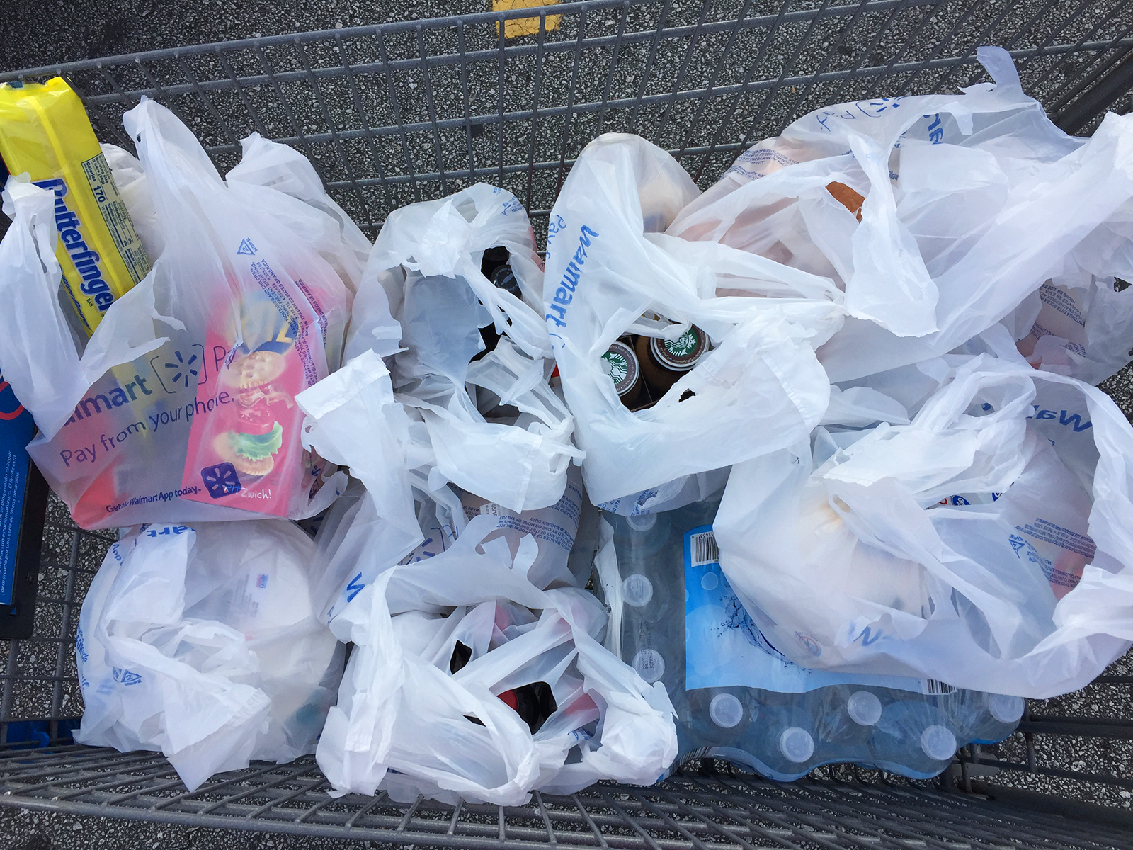 Hier in Amerika wird fast jeder Artikel von der Kassiererin in ein bis drei Plastiktüten verpackt bevor man ihn bekommt.