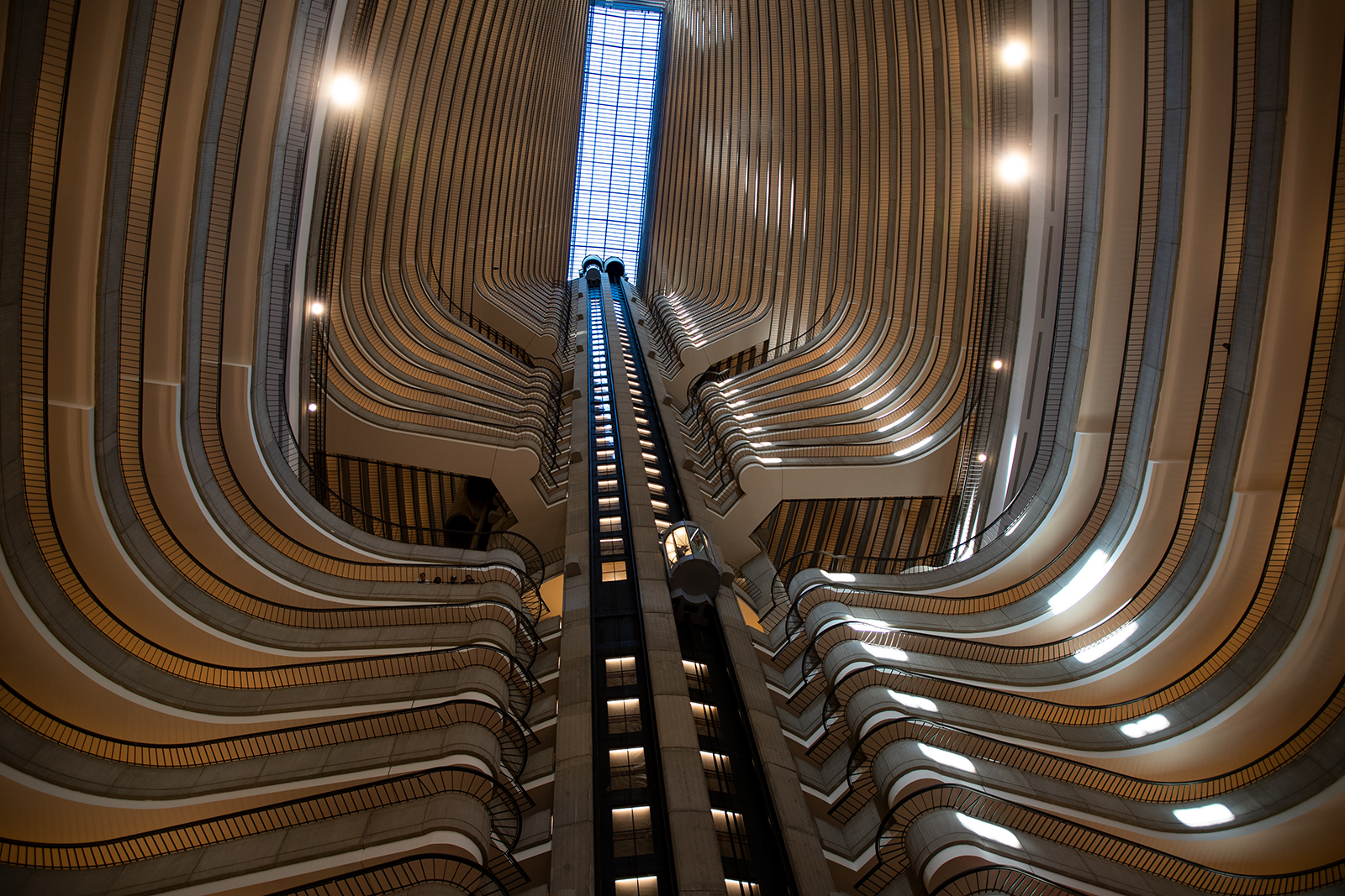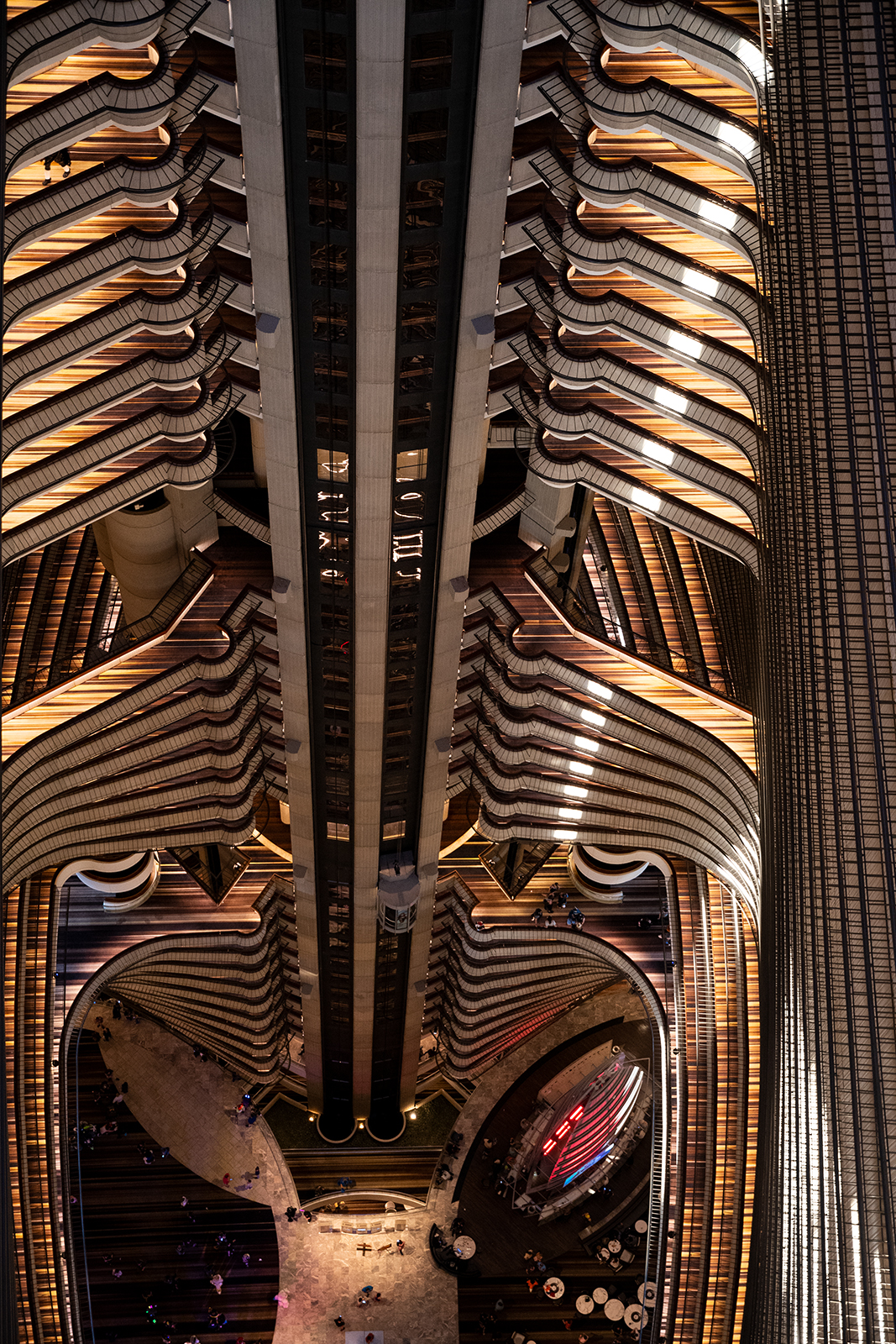 Wir steigen ein und drücken auf den Knopf für das höchste Stockwerk. In wenigen Sekunden wird man fast 50 Stockwerke „hochkatapultiert“