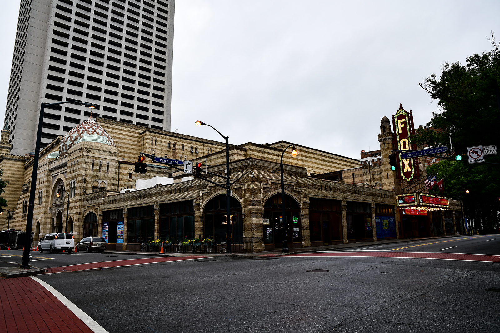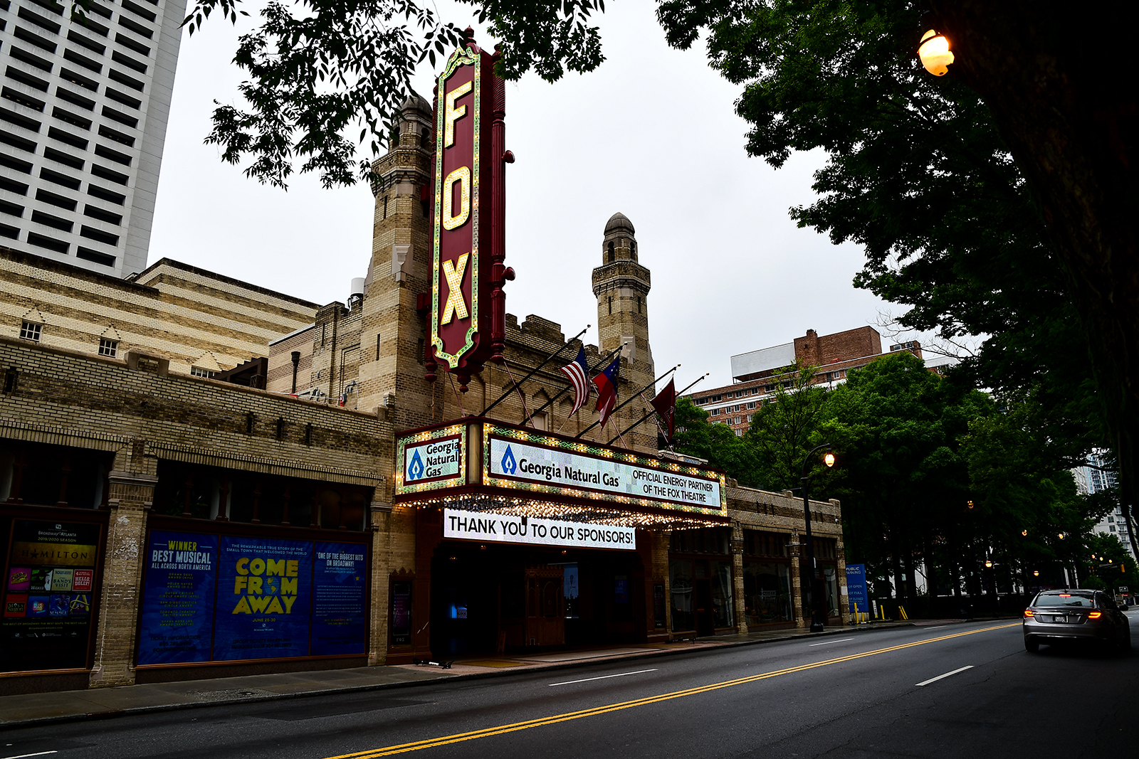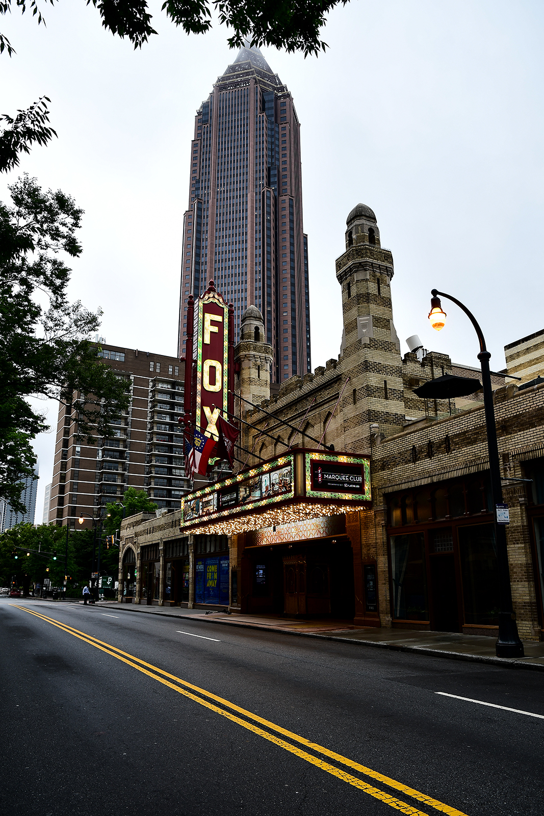 Es regnet – nein es schüttet. Aber es ist warm. Knapp 30 Grad werden wir heute bekommen. Eigentlich wollten wir uns heute die Stadt ansehen. Aber eigentlich bedeutet hier – es macht keinen Sinn bei strömendem Regen durch die Stadt zu latschen. Deshalb haben wir uns für einen Auto-Trip durch die Kinowelt Atlantas entschieden und hoffen dass wir uns in den Regenpausen immer etwas anschauen können. Der erste Stopp ist das Fox Theater. Das Fox Theater in Atlanta ist eins der wenigen noch existierenden großen Filmpaläste der 1920er Jahre und steht unter Denkmalschutz. Viele Künstler traten hier in diesem berühmten Theater auf. Am 14. April 2016 gab Prince im Fox Theater sein letztes Live-Konzert bevor er am 21. April 2016 starb.