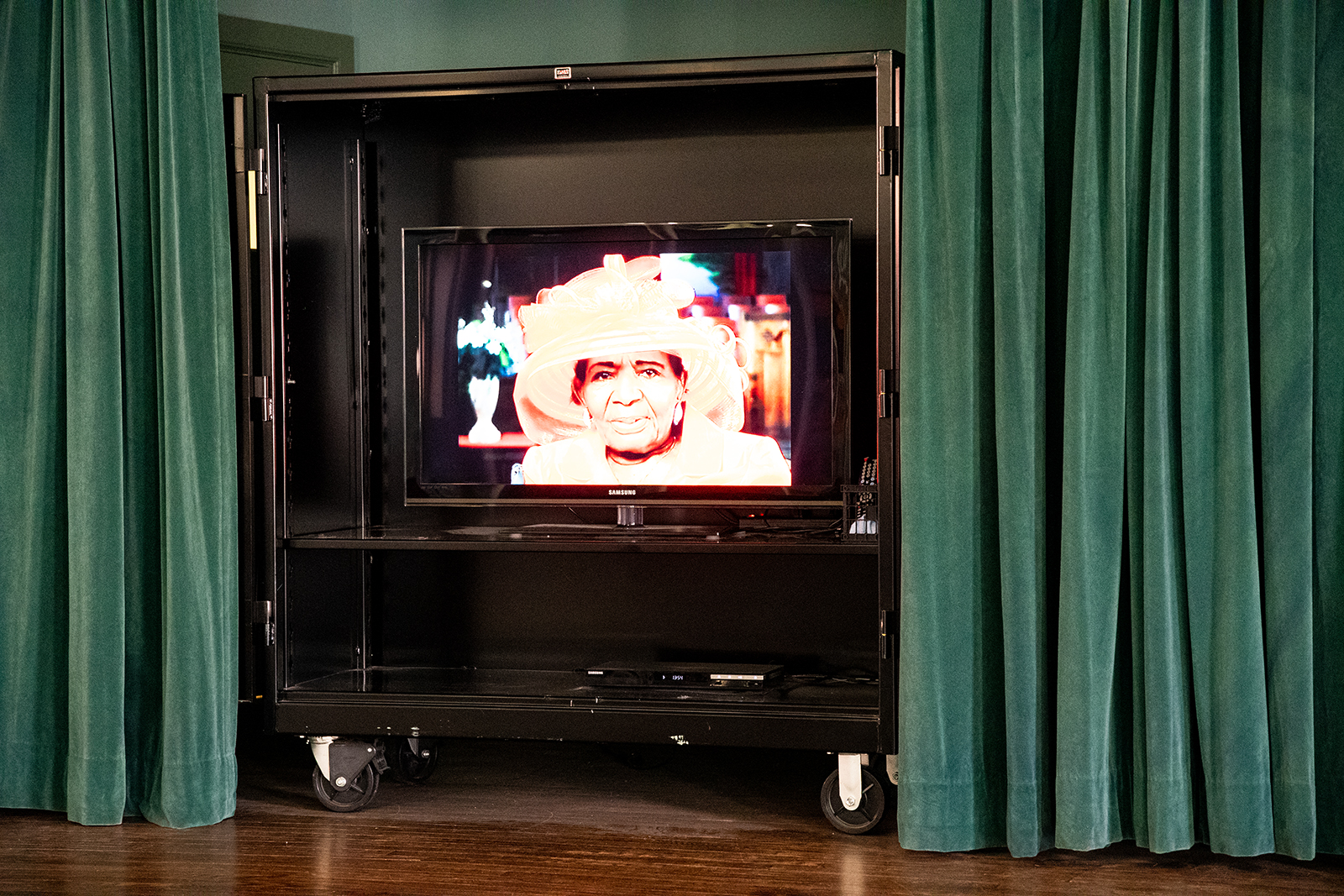 Im Keller der Kirche kommt die Predigt dann direkt aus dem TV.
