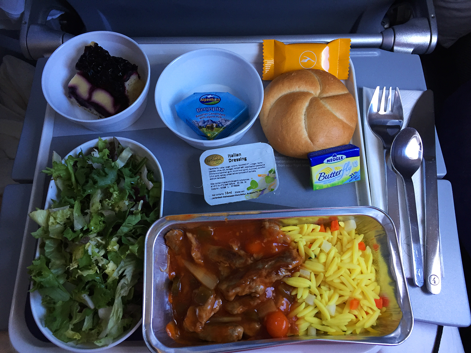 15 min später haben wir die Reisehöhe erreicht und es wird die Vorspeise in der Holzklasse serviert.