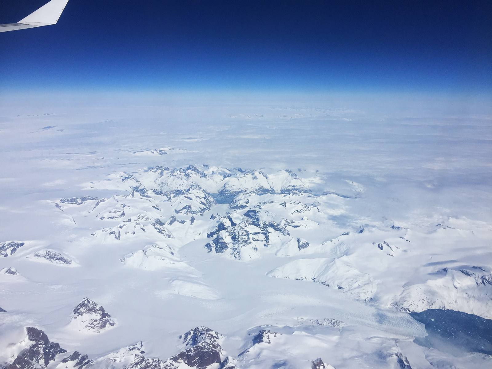 Überflug der Südspitze Grönlands geht es in Richtung Kanada.