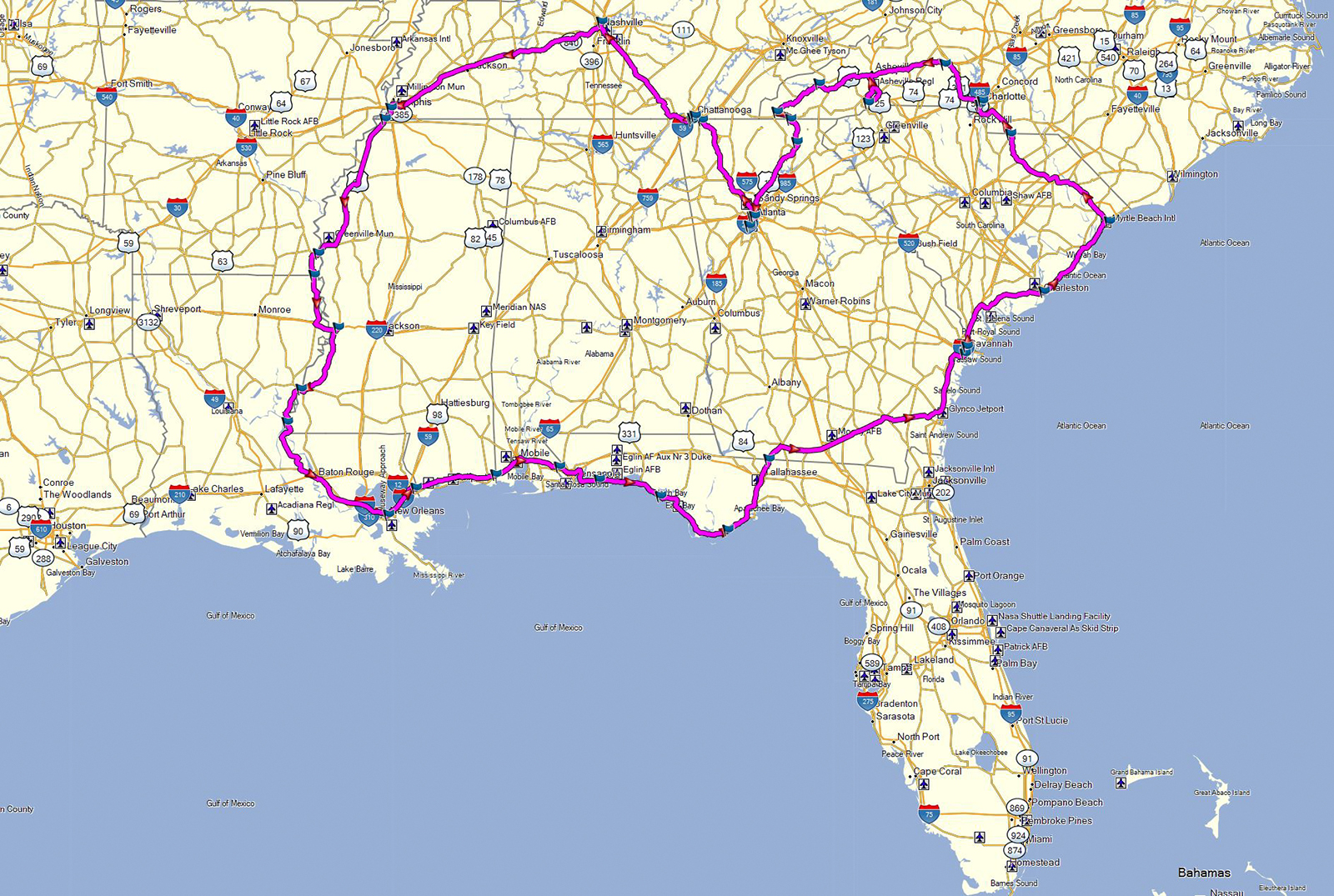 Morgen ist ein Fahr-Tag. Wir werden von Atlanta über Chattanooga nach Nashville fahren.
