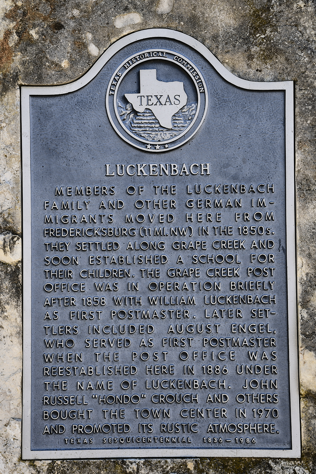 Luckenbach wurde Ende der 1840er von deutschen Farmern besiedelt, darunter die Brüder Jacob und August Luckenbach. Das älteste Gebäude Luckenbachs ist ein Gemischtwarenladen und Saloon, der 1849 von Minna Engel – deren Vater ein deutscher Wanderprediger war – eröffnet wurde. Luckenbach war als Handelsniederlassung gegründet worden und betrieb Handel mit den Comanchen, mit denen seit 1847 ein von John O. Meusebach geschlossener Friedensvertrag galt.