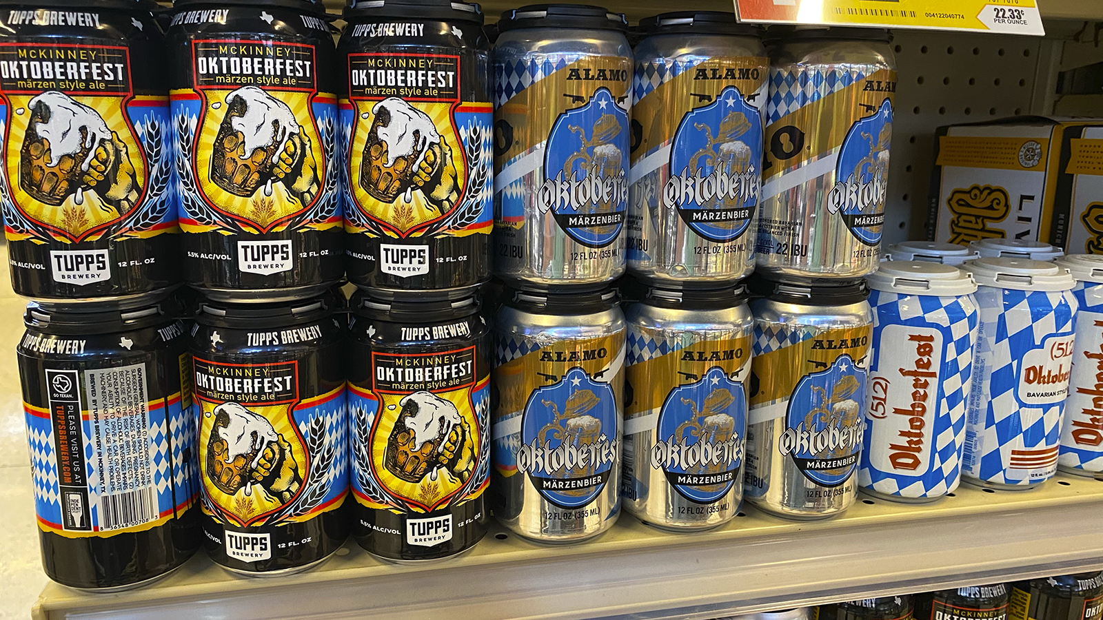 Auf den letzten 50 Km wird es voll, was nicht bedeutet dass ich meinen Tempomat abschalten muss. Mit Tempo 90 geht es Richtung Innenstadt. 10 Km vor dem Stadtzentrum hat die Autobahn 10 Spuren. 10 Spuren in EINE Richtung. 20 in Beide. Für uns Deutsche ist es komisch wenn der Navi sagt „Bitte in der neunten Spur von Links einordnen“. Beim Zählen in der Rush Hour wird das schwierig. Dann muss ich den Tempomat doch abschalten. Wir sind da und fahren von der Autobahn ab. Der erste Weg ist zu einem Einkaufszentrum. Wir haben hier in San Antonio 5 Nächte und ein komplettes Apartment. So können wir uns meist selbst versorgen. Im Supermarkt erkennt man die deutschen Wurzeln der meisten Texaner.