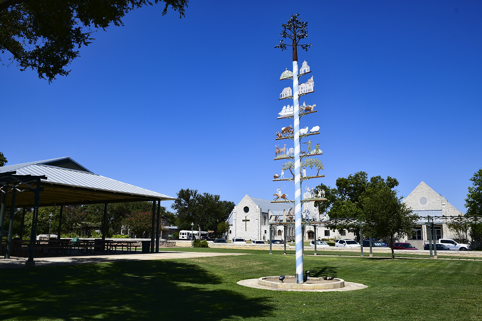 Als wir ankommen parken wir das Auto am Marktplatz. Typisch deutsch sieht es hier nicht aus. Der Baustil ist wieder typisch amerikanisch. Hin und wieder sind aber dann doch die deutschen Wurzeln erkennbar. Leider haben wir hier keinen getroffen der Texasdeutsch sprach. Diese Generation wird langsam aussterben.