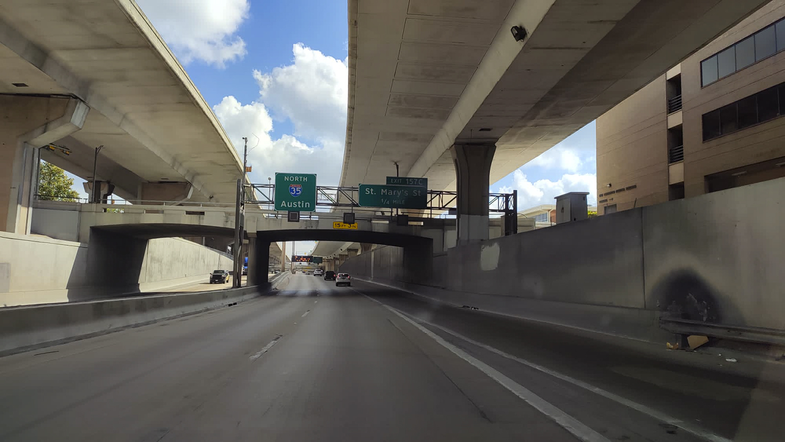 Heute ist wieder ein Fahrtag eingeplant. Ca. knapp 600 Km werden es werden. Wir starten früh um der „Rush Hour“ zu entgehen. Zwei Minuten nach dem Verlassen des Apartments sind wir auf der Interstate Autobahn. Bzw. auf dem mehrstöckigen Achterbahn Kreisel-Wirrwarr in San Antonio. Die Autobahn ist fast leer.