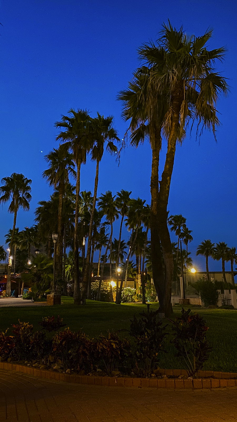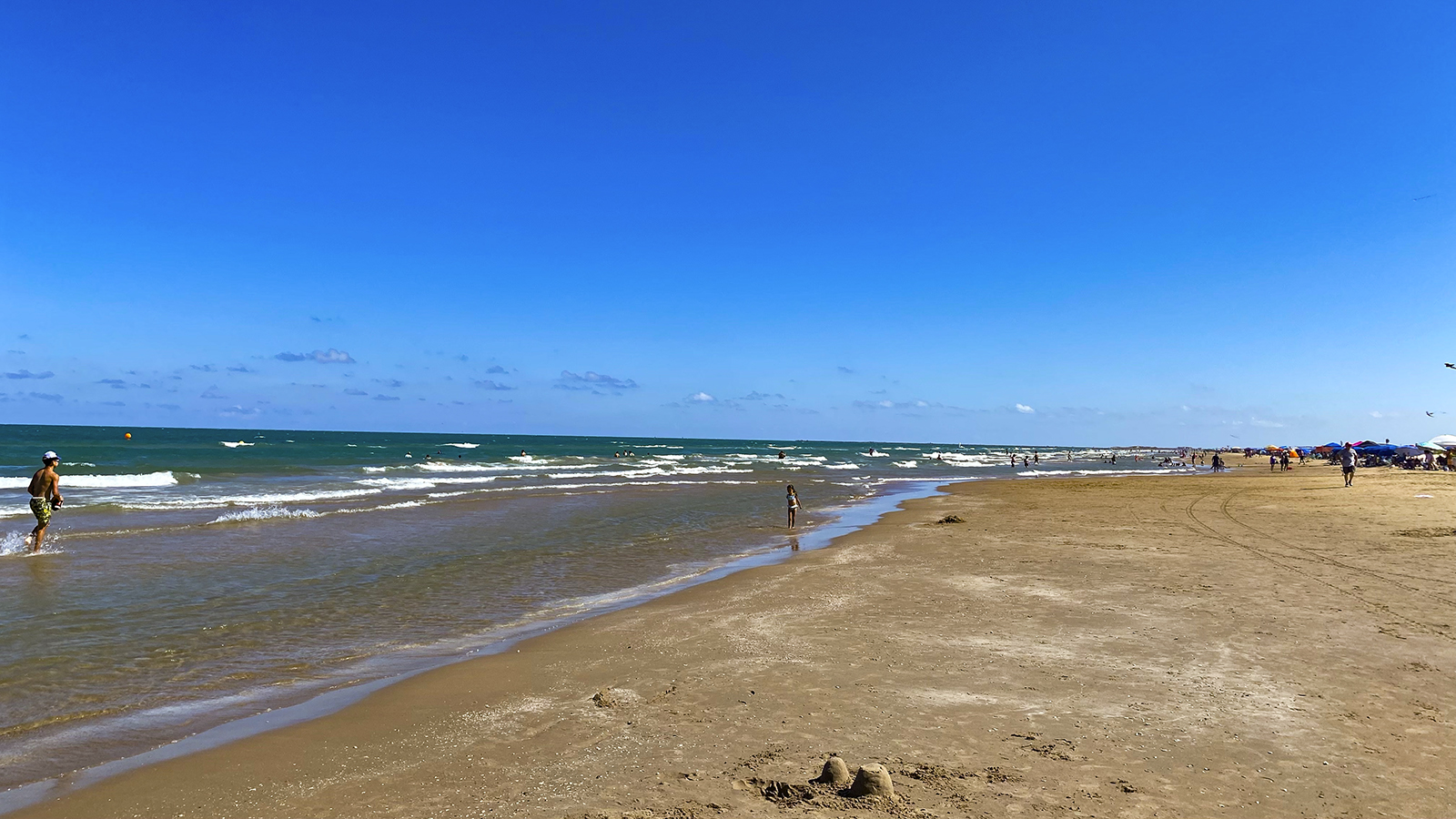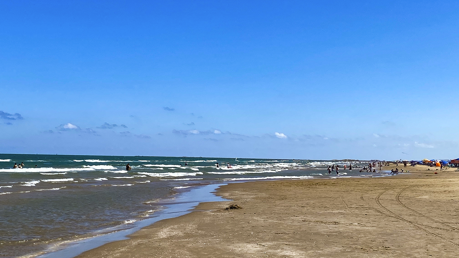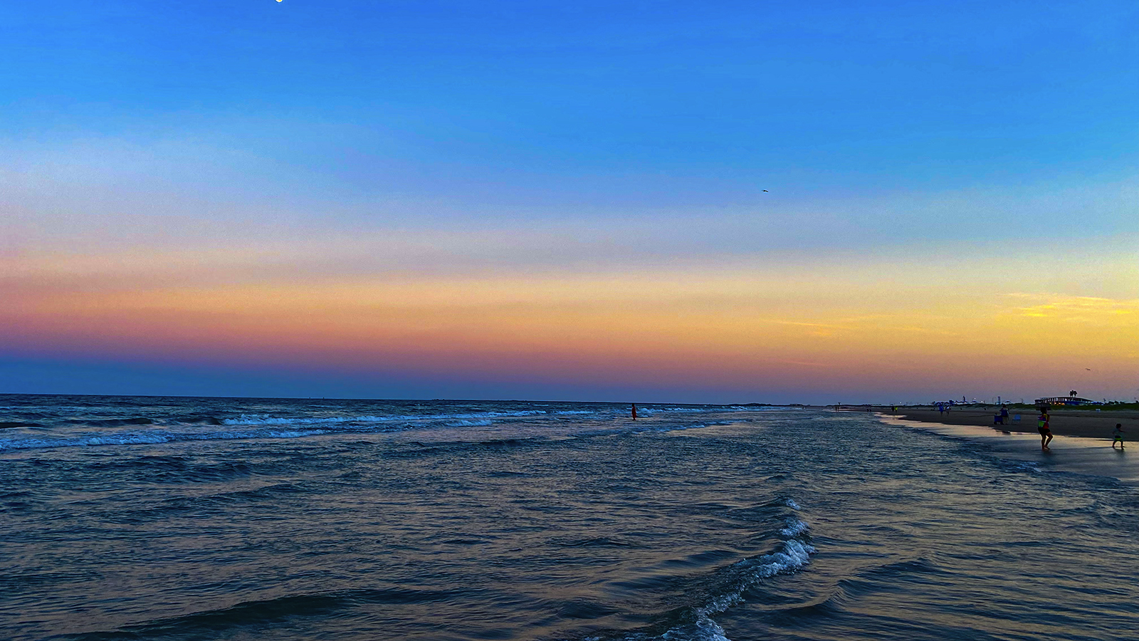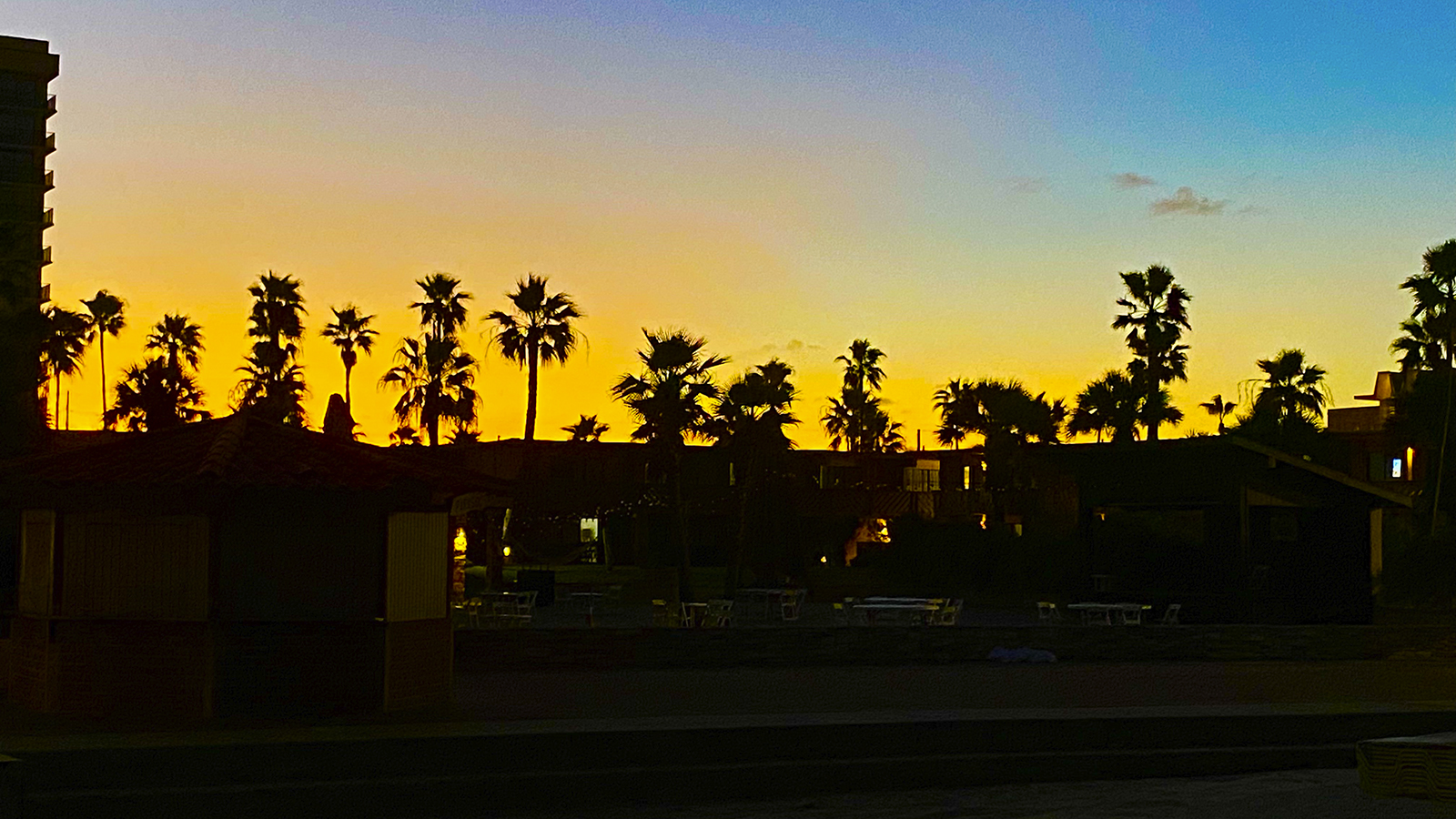 Es ist früh am Abend und wir haben einen Außentemperatur von 38 Grad. Der Golf von Mexico hat eine Wassertemperatur von 34 Grad. Es ist wie in einer Badewanne. Eine ständige leichte Brise vom Meer lässt die Temperatur aber nicht so heiß erscheinen. Es ist auch nicht schwül. Es ist eher sehr trocken und es wirkt angenehm warm.