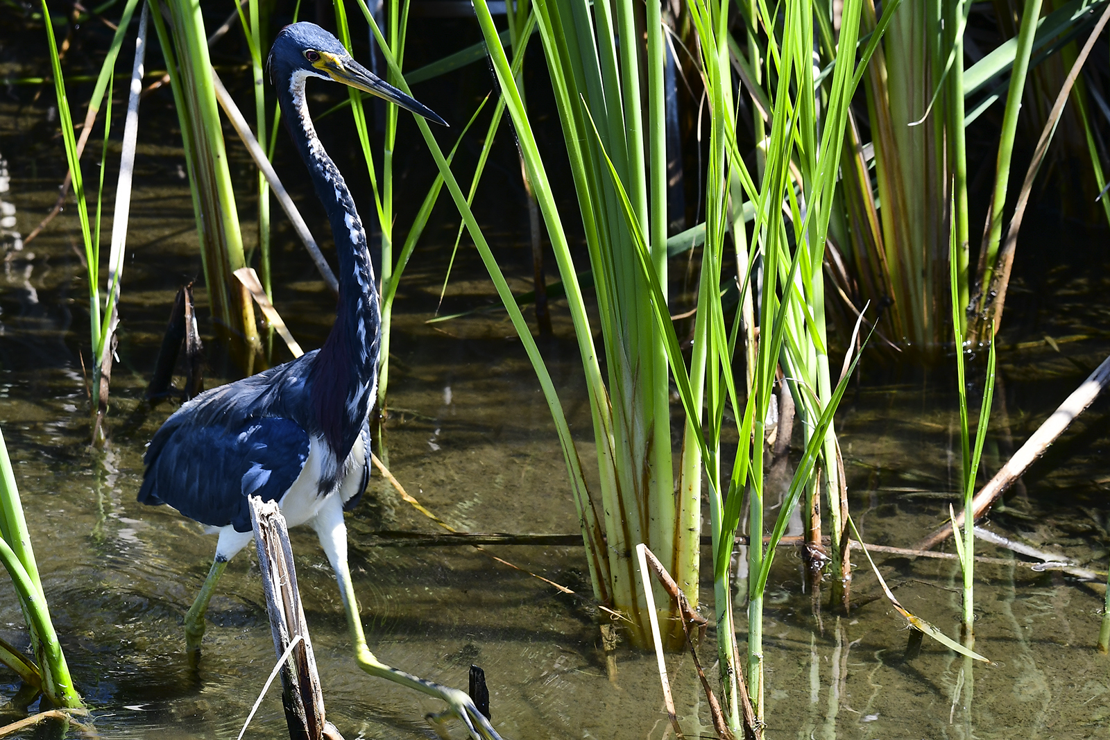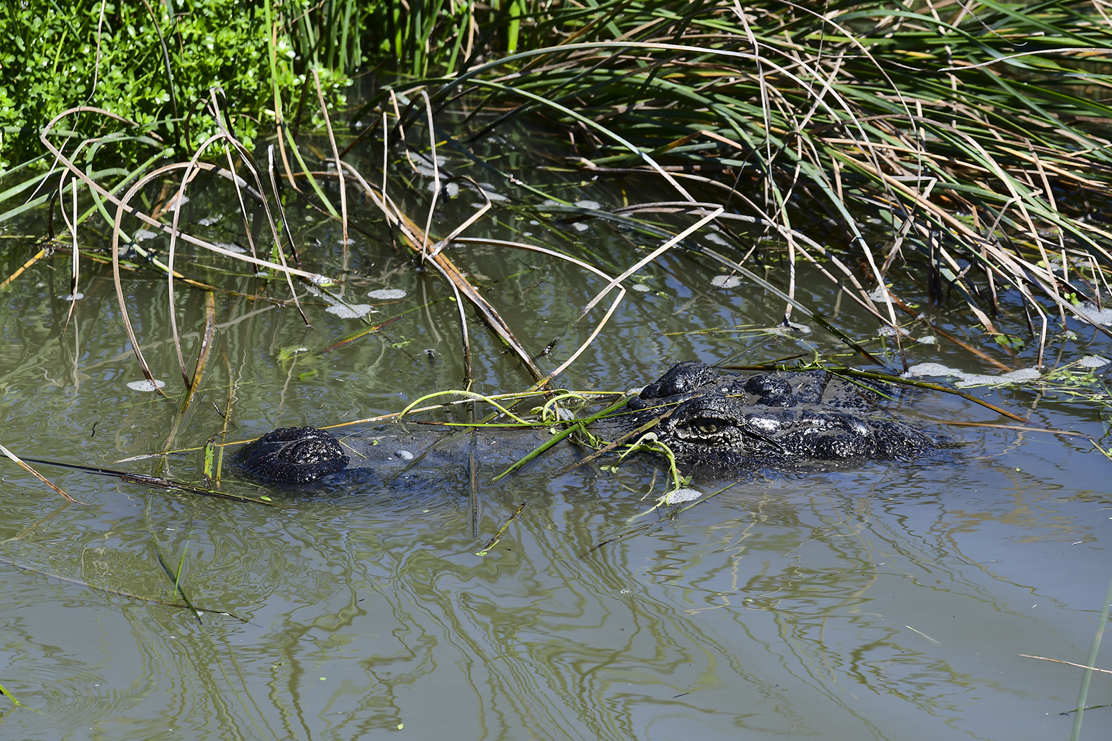 Auf den letzten Metern beäugt uns noch ein großer Vogel und am letzten Tümpel verabschiedet sich noch ein mittelgroßer Alligator von uns.