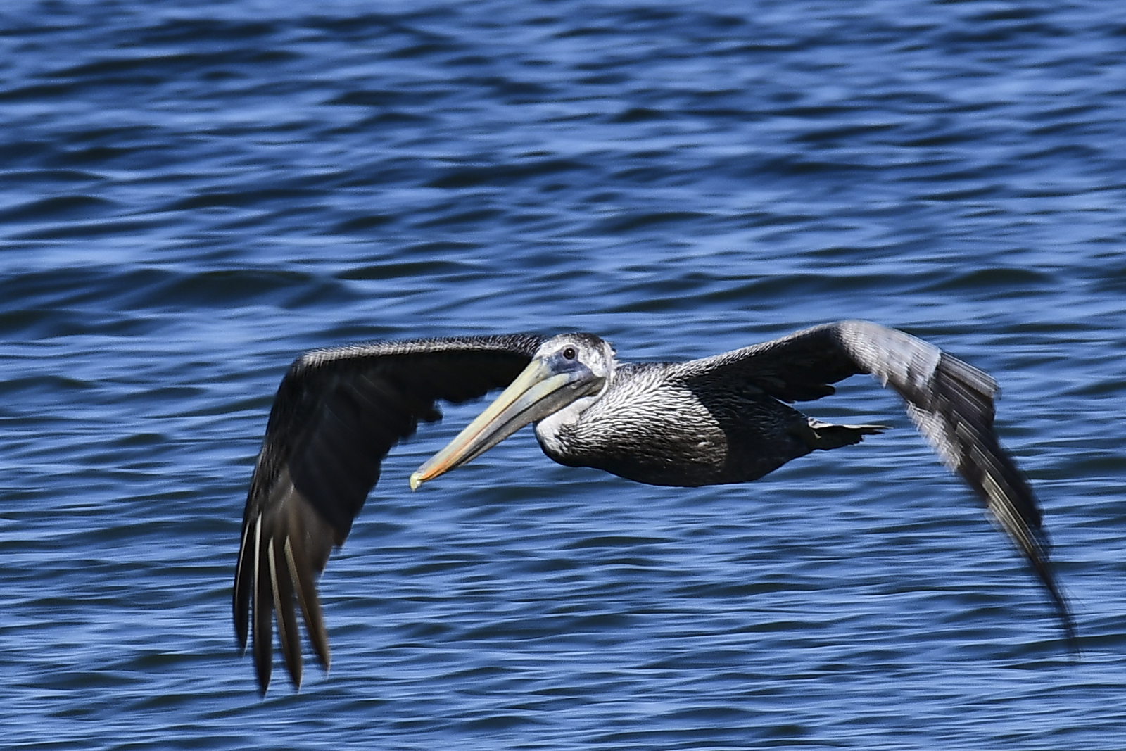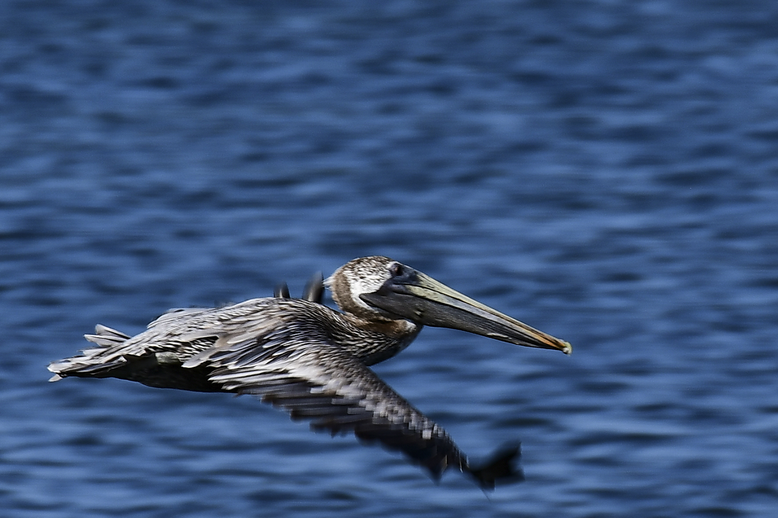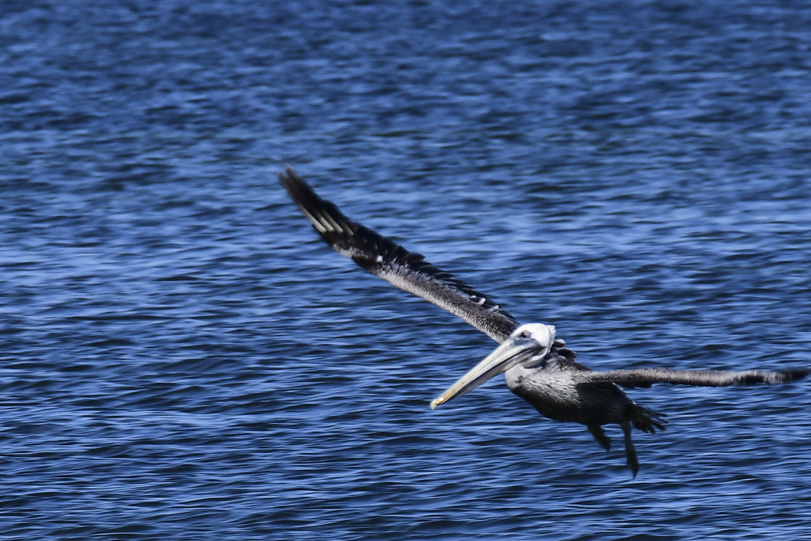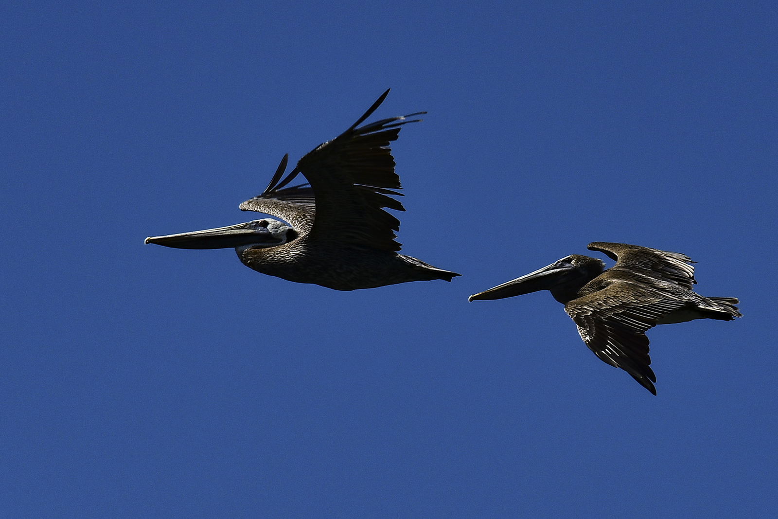 Knapp über unsere Köpfe ziehen wieder ein paar Pelikane in Richtung offenes Meer.